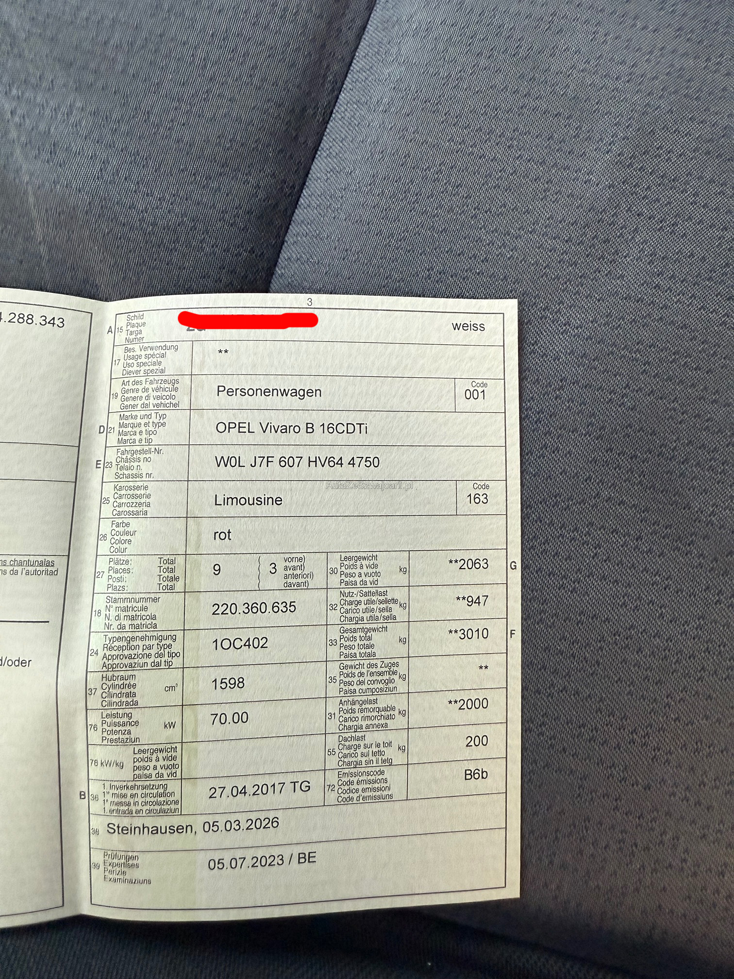 | Kommentar | Opel Vivaro Fahrzeug fährt und schaltet. Motor und Getriebe wirken im allgemeinen Zustand gut. Das Fahrzeug wurde nicht durch eine Werkstatt geprüft oder getestet. Karosserie weist starke Gebrauchsspuren auf (Kratzer, Beulen, teilweise schlecht nachlackierte Stellen – siehe Bilder). Fahrzeug wird im Zustand wie übernommen verkauft, nicht gereinigt oder aufbereitet. Camper-Umbau Vorrichtung vom Vorbesitzer vorhanden. 2 Schlüssel / 8-fach bereift Verkauf ab Platz ohne Garantie oder Gewährleistung auf erwähnte oder nicht erwähnte Mängel. Besichtigung möglich. |