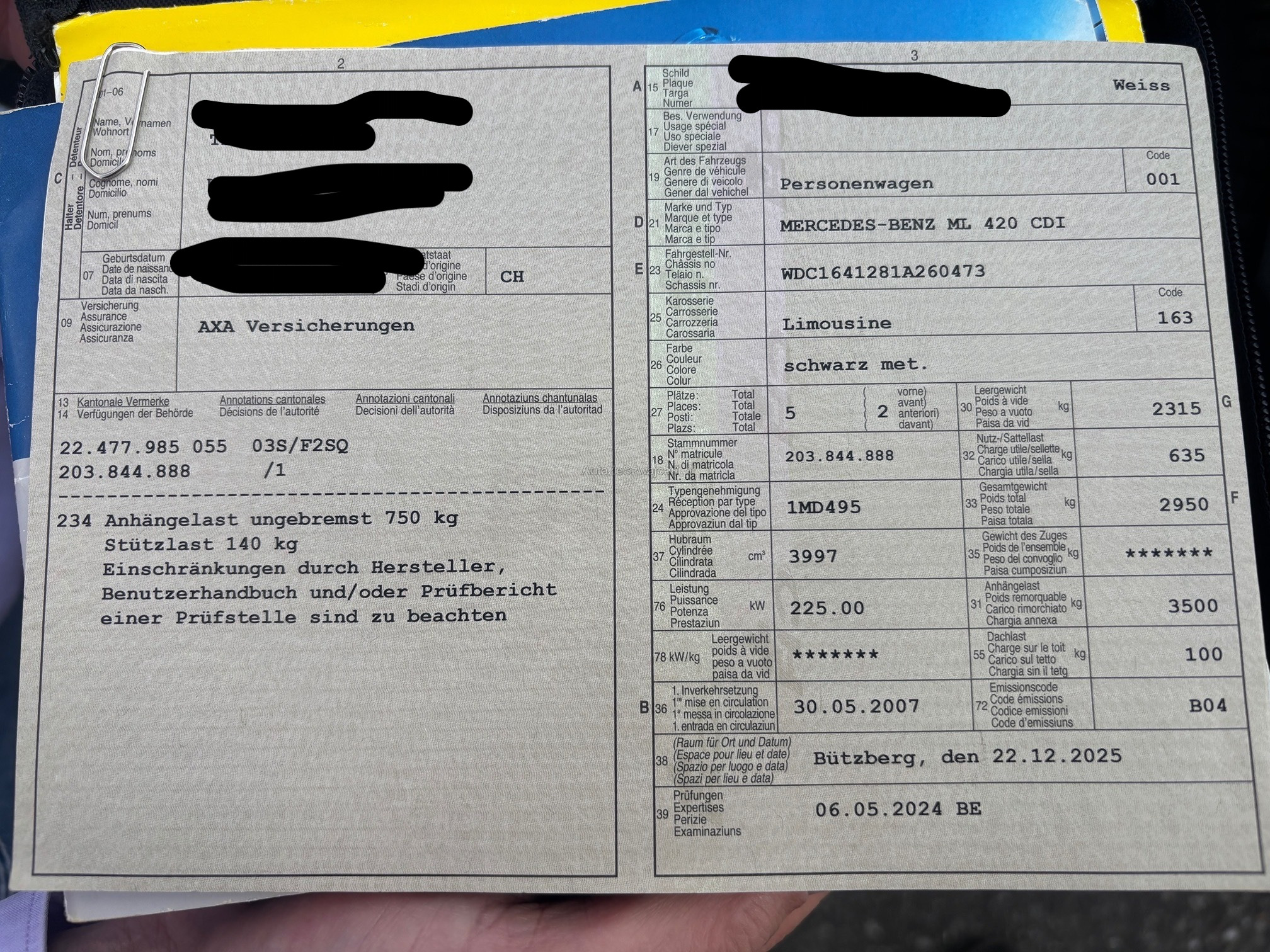 | VIN | WDCXXX |