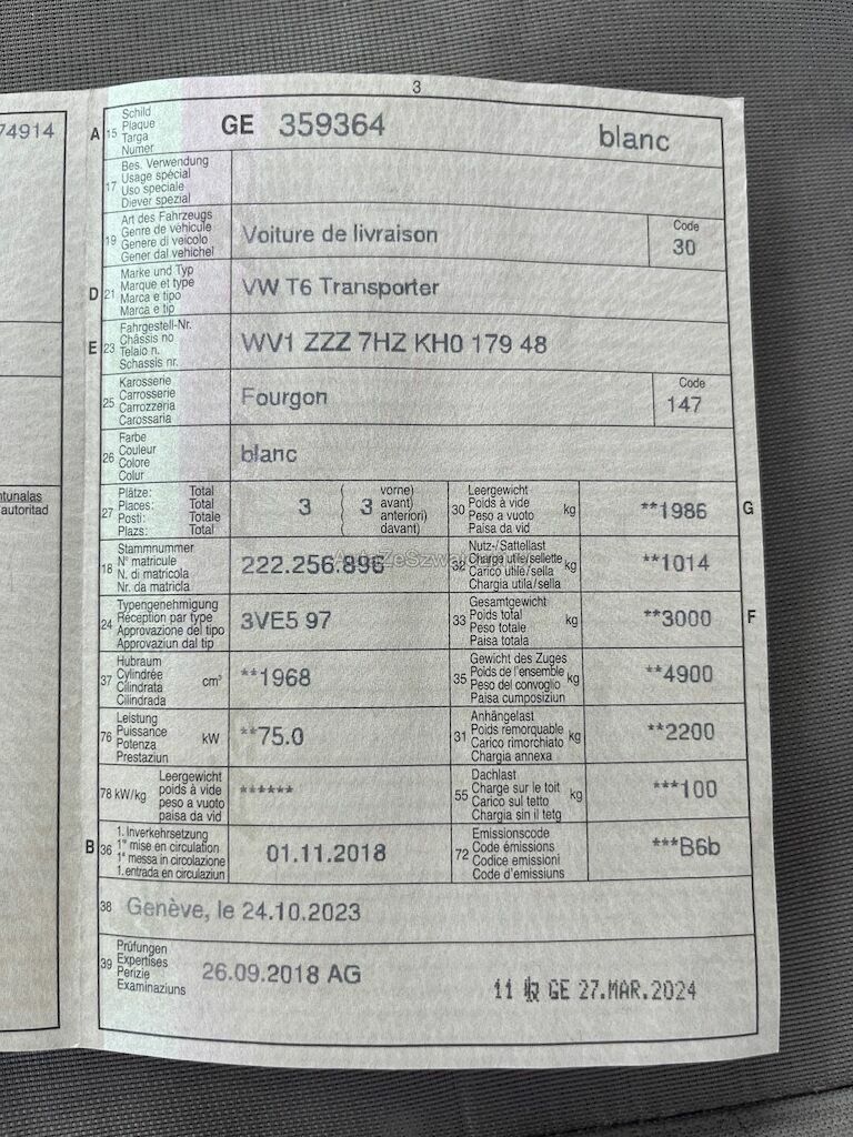 | Typ | T6 Fourg 3000 TDI CR 102CH 5V |