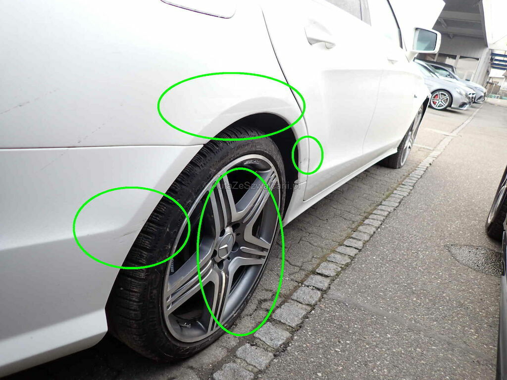 Türe, Seitenwand, Felge und Stosstange hinten rechts