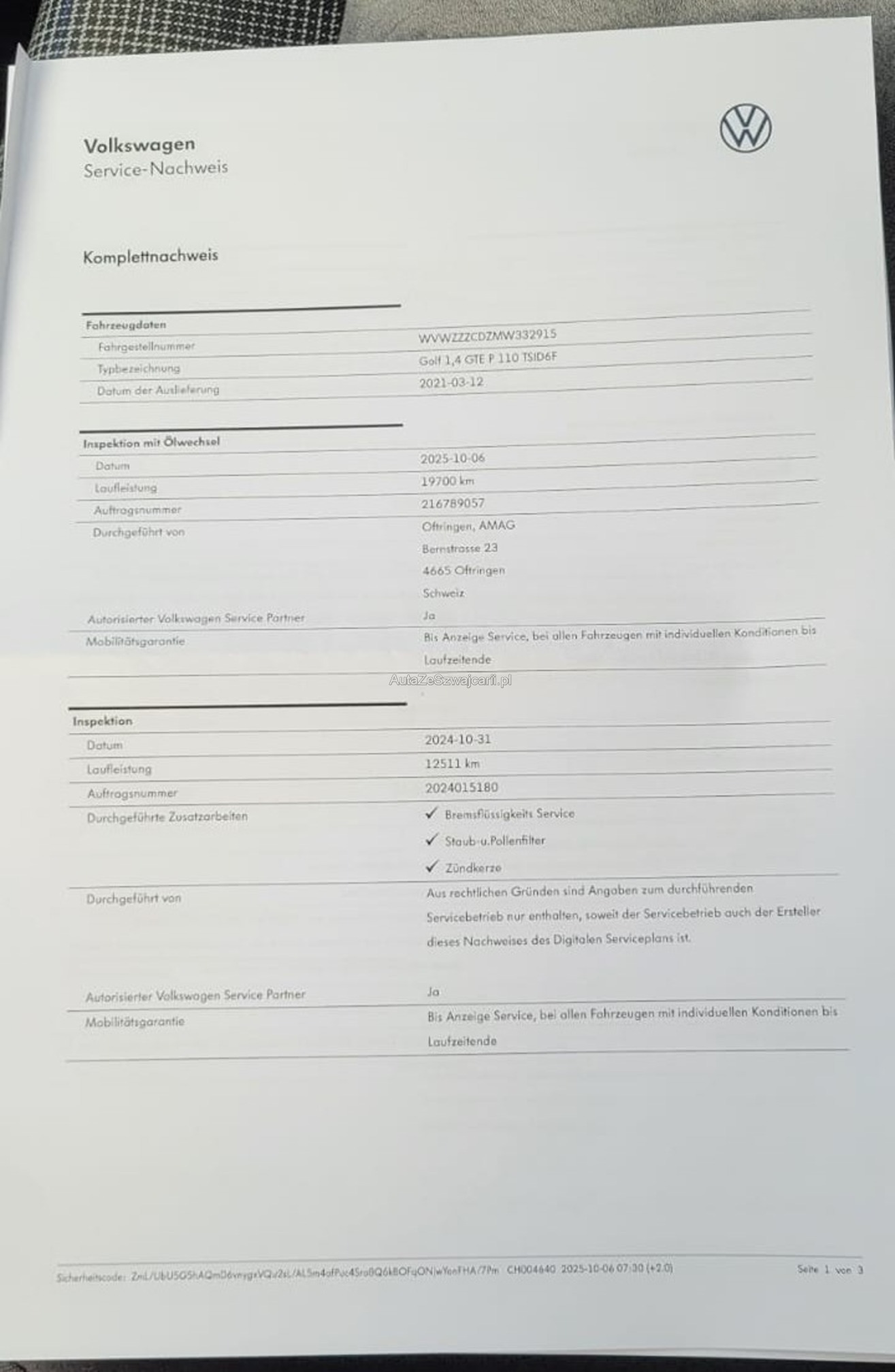 | VIN | WVWXXX |