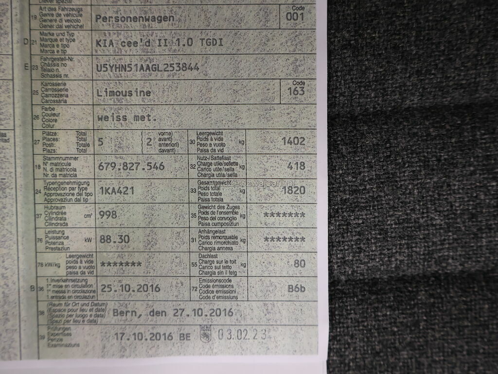 | Typ | Cee'd 1.0 T-GDi Swiss Champion |