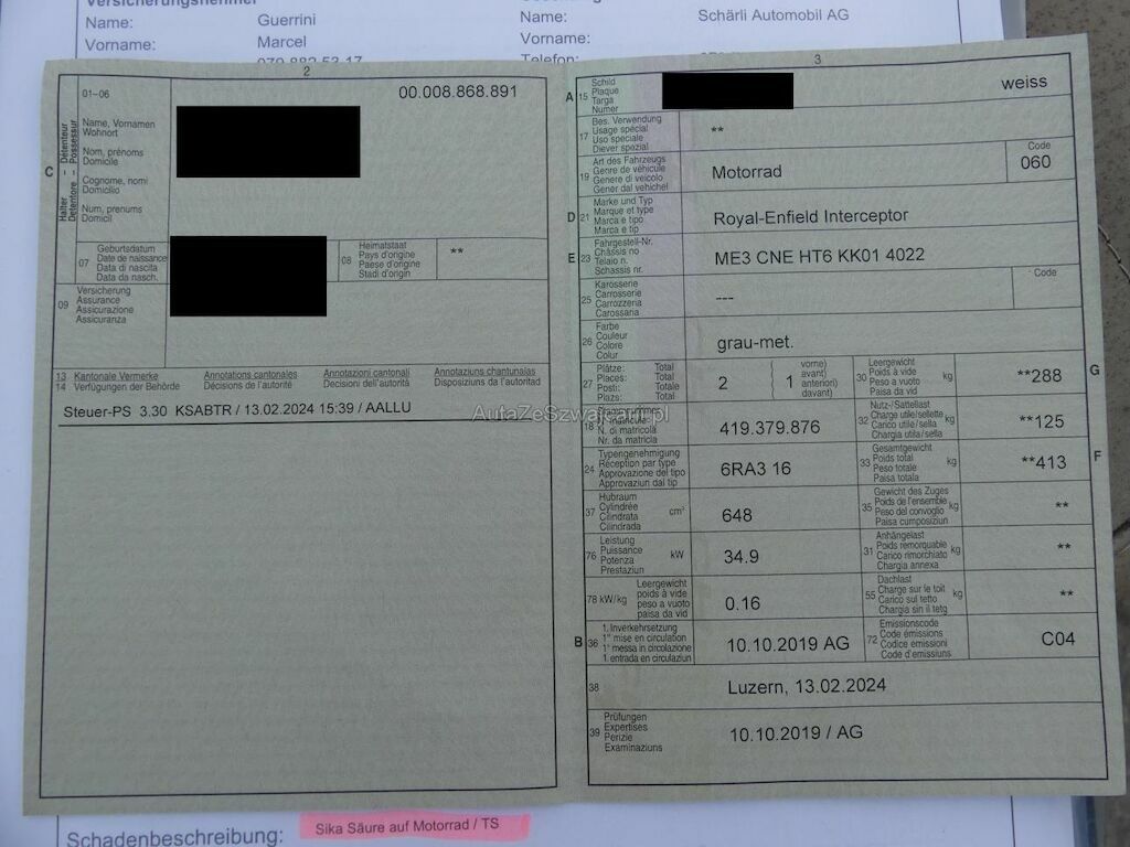 Ganzes Motorrad durch Lauge und/oder Säure verunreinig.