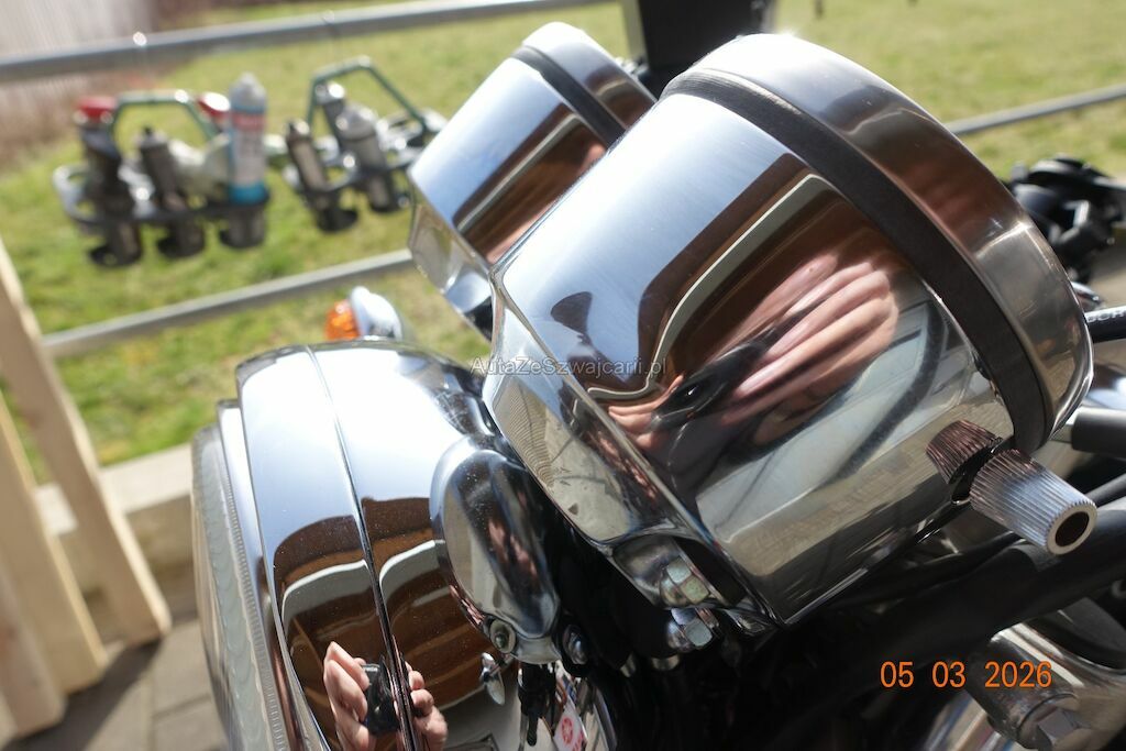 Lenker ist krumm, Kratzer am ganzen Motorrad, Tank hat auch Beulen links vorne, vorne Lichthalterung beschädigt sowie Licht, äussere Chromschutzbleche, Blinker.