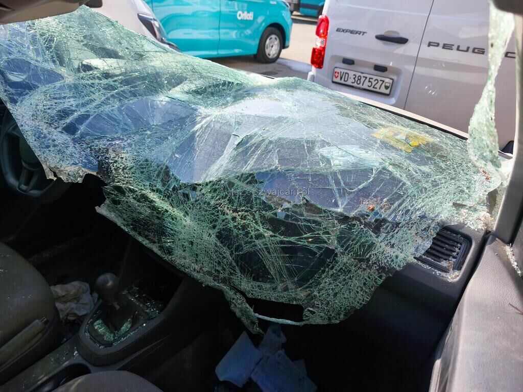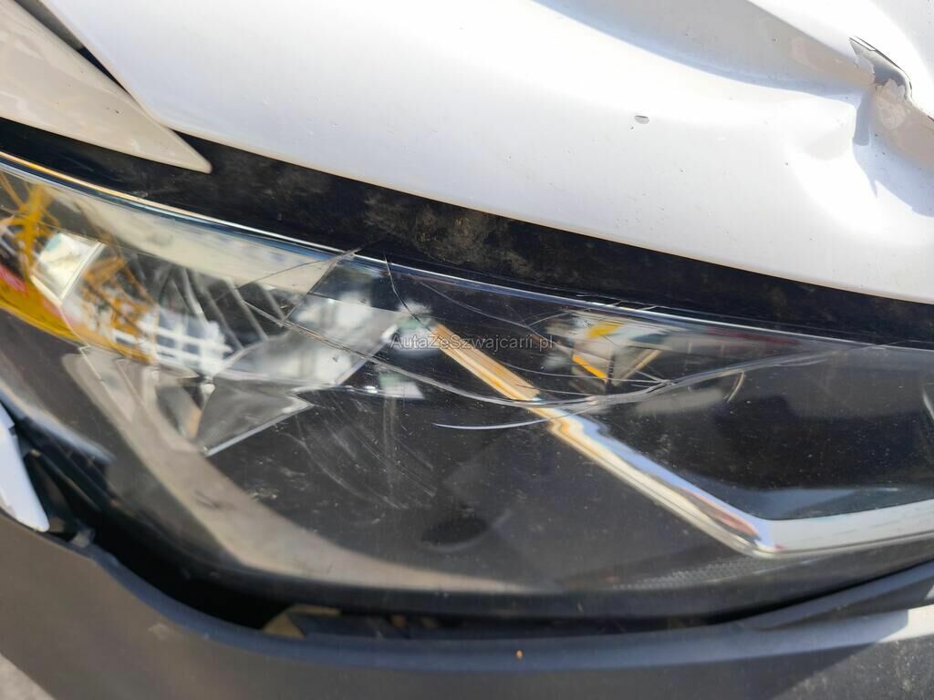 Totalité de la carrosserie endommagée, pare-brise, tableau de bord, pare-chocs avant, phare avant droite, etc...