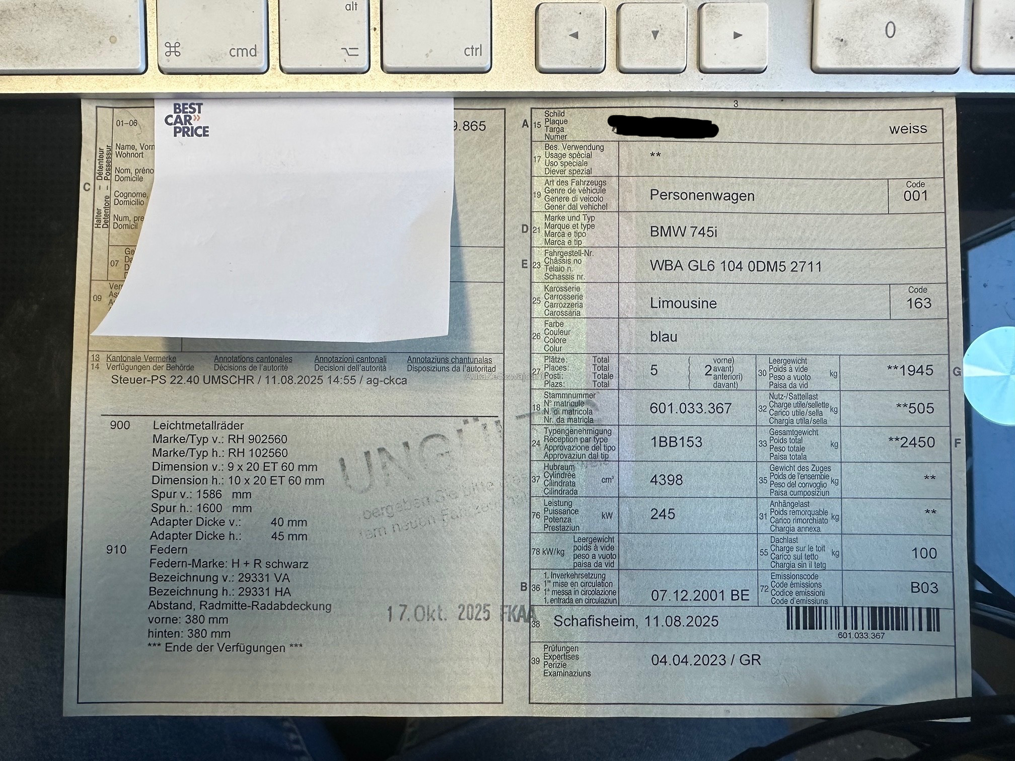 | Kommentar | Am Fahrzeug ist alles eingetragen! Servicegepflegt! VDD, Ölwannedichtung und Getriebeölwechsel wurden gemacht! Fahrzeug macht guten Eindruck, läuft und fährt einwandfrei! Nachdem der Meistbietende eine Zuschlag erhalten hat, keine Nachverhandlungen möglich! Keine Rücknahme und Gewährleistung! |