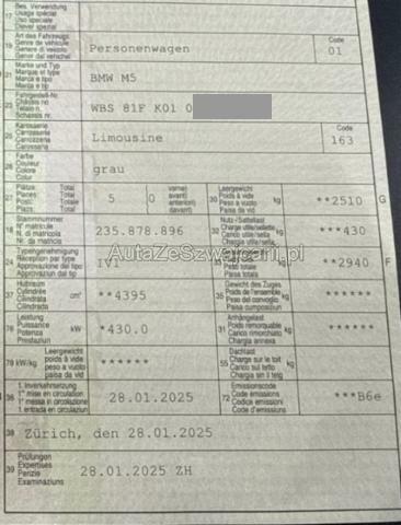 | Condition_and_Equipment | Verkauf Der Verkauf erfolgt durch den Halter in Zusammenarbeit mit der Firma TeamConsulting, nicht durch die XpertCenter AG. Das Fahrzeug muss bei Abholung bar vor Ort bezahlt werden. Zusätzlich zum Gebot fällt eine Handlinggebühr an. Weitere wichtige Hinweise Kein Fahrzeug, es wird nur auf den abgebildeten Sommerradsatz geboten! --- Sonstige Ausstattung und Zubehör Es handelt sich um Sommerkompletträder passend zu BMW M5 (G90) in den Dimensionen: Vo: 285/40 ZR 20 111Y XL Hi: 295/35 ZR 21 110 Y XL Reifen: HANKOOK Ventus S1 evo Z mit ca. 4 mm Profil Alle vier Felgen sind unbeschädigt BMW SA: S01GC / M Doppelspeiche 951 Schwarz |