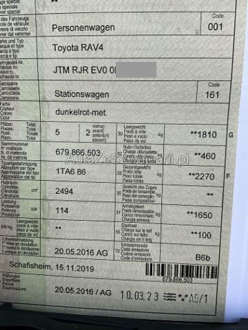 | Condition_and_Equipment | Sonstige Schäden Div.Carrosserie Teile sind leicht beschädigt. --- Serienaustattung Klimaautomat Airbag Fahrer und Beifahrerseite Sitzheizung vorne Elektrische Fensterheber vorne + hinten Aussenspiegel elektrisch verstellbar und heizbar Tempomat Servolenkung Nebelscheinwerfer Zentralverriegelung mit Fernbedienung Innenspiegel automatisch abblendbar Kopfairbag vorne und hinten Lederlenkrad mit Lederschaltknauf Scheibenwischer mit Regensensor Leichtmetallfelgen 18" Deaktivierung Beifahrerairbag Park-Distanz-Sensor vorne + hinten Audiofernbedienung am Lenkrad Sitzbezüge in Teilleder Stabilitätskontrolle VSC + Traktionskontrolle TRC Rückfahrkamera Seitenairbags vorne Follow-me-home Lichtfunktion Knieairbag Fahrer Rücksitzlehnen getrennt abklappbar 60:40 HSA Berganfahrassistent Reifendruck-Überwachungsanzeige Heckklappe elektrisch Bremsassistent BA Smart entry-start/ Schliess- Startsystem Getönte Scheiben LED-Scheinwerfer LED Tagfahrlicht ABS und EBD Elektr. Bremskraftverteilung inkl. BA Aussenspiegel elektrisch einklappbar Totwinkel-Assistent Keine Gewähr auf die Angaben der Serienausstattungen Fahrersitz elektrisch verstellbar mit Lendenwirbelstütze Toyota Touch 2/ USB/ Bluetooth/ DAB+ Anhänger-Stabilitätskontrolle Gratis-Service 6 Jahre/ 60'000 km Sonderausstattung Metallic-/ Mica Lackierung Pack Safety Sense Sonstige Ausstattung und Zubehör Anhängekupplung |