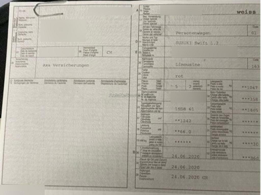 | Fahrzeugausweis | Vorhanden |