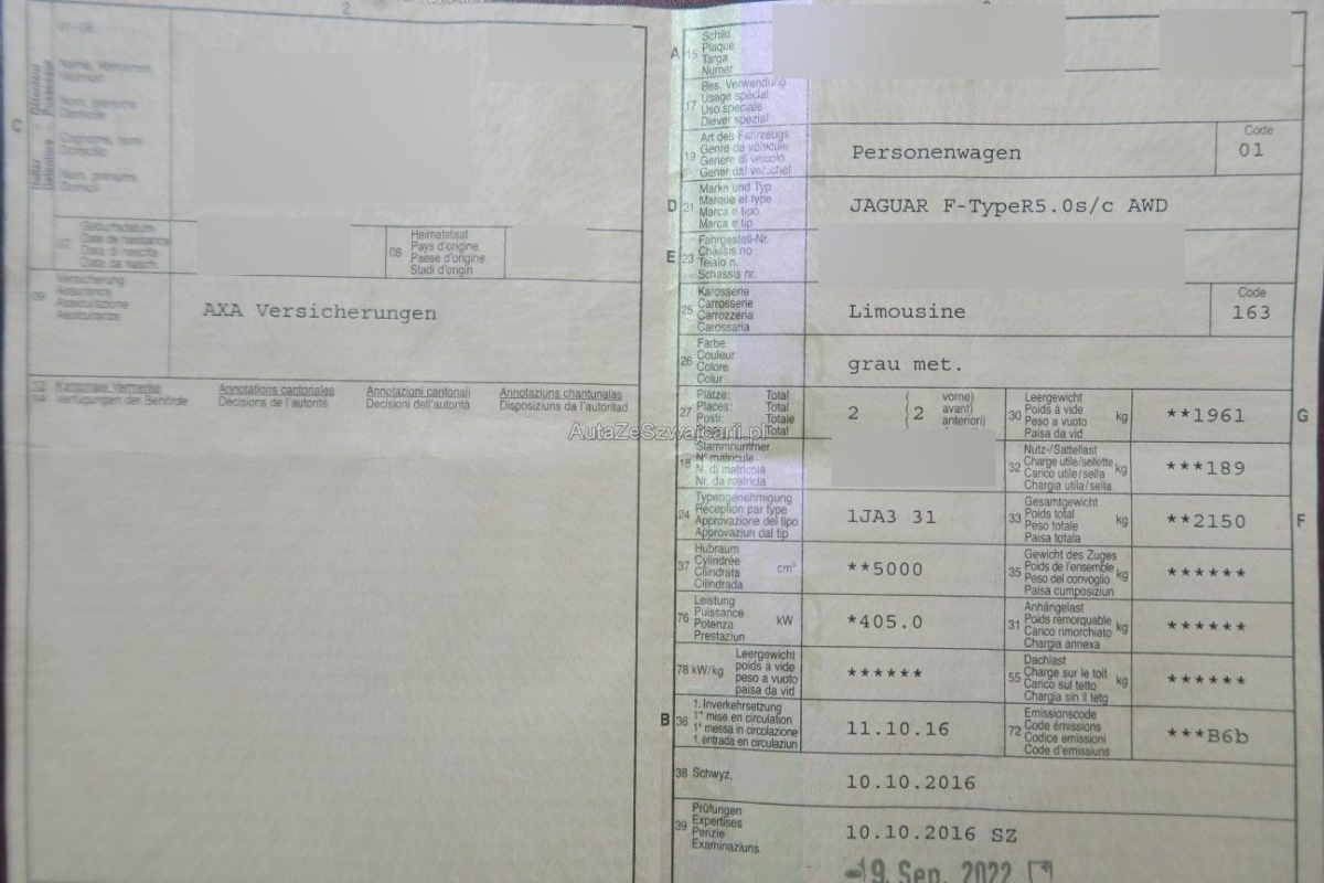 | Fahrzeugausweis | Vorhanden |