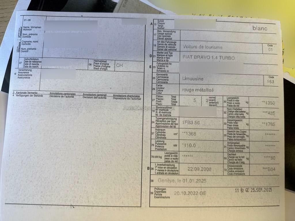| Fahrzeugausweis | Vorhanden |