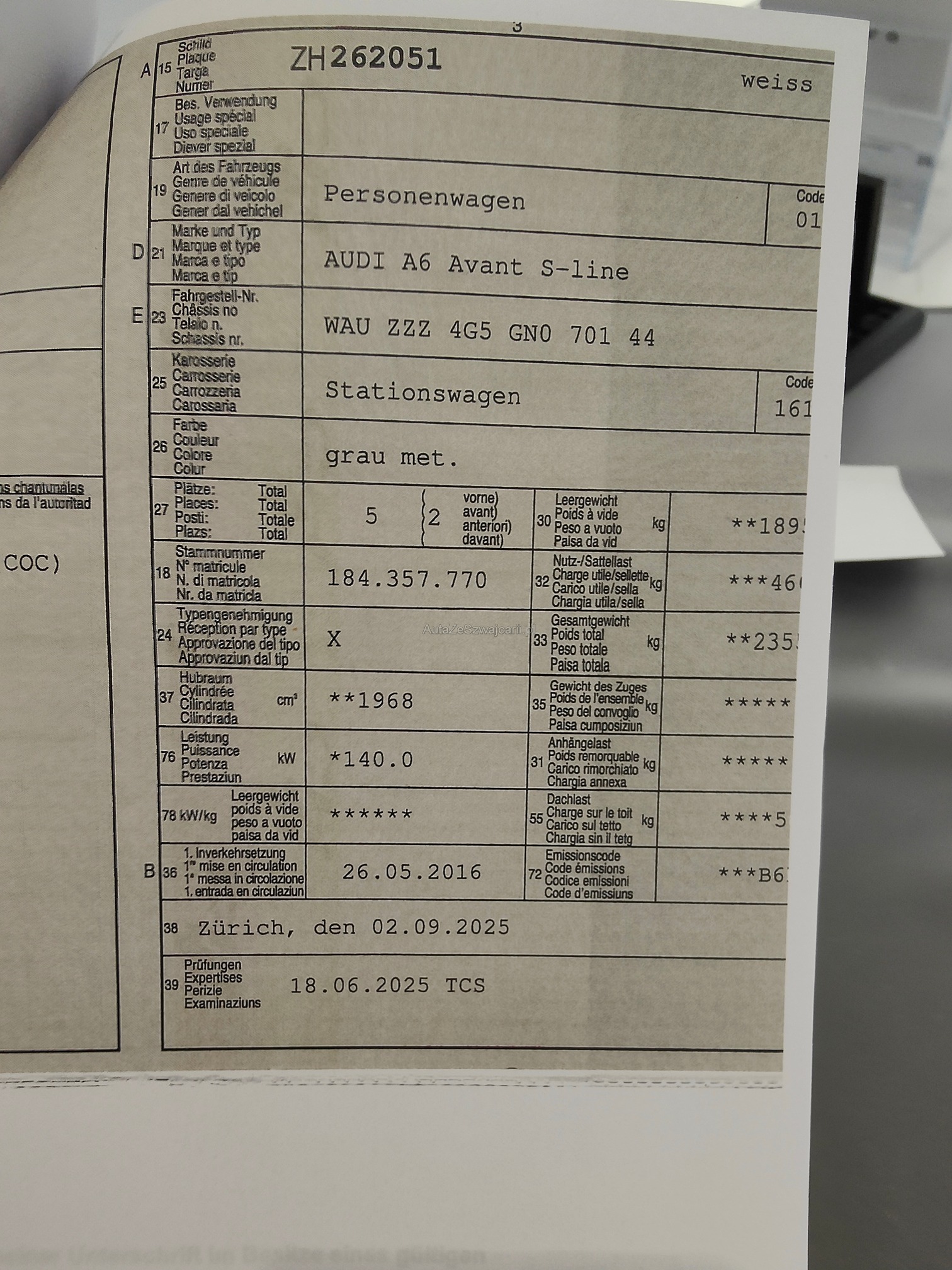 | VIN | WAUXXX |