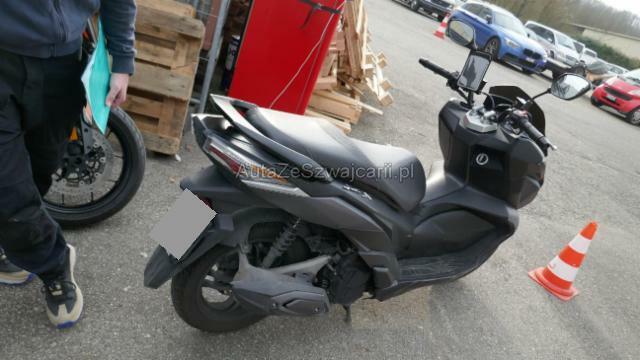 | Condition_and_Equipment | Schlüssel Nur ein Schlüssel vorhanden. Zweirad-Kategorie Roller Weitere wichtige Hinweise Nur ein Schlüssel. Kein Wartungsheft, keine Garantie. --- Rechts Rechte Seite beschädigt. Ist auf die rechte Seite gefallen. Front Schutzblech vorne defekt. Vorderrad beschädigt. Gabel beschädigt. Lenker verbogen. Heck Verschalung hinten verkratzt. Weitere Beschädigungen Frontalaufprall und Sturz rechts: Vordere Felge und Bremsscheibe verbogen, Gabel, Gabel-T-Stück und Lager verformt, beschädigt. Kotflügel vorne, Verkleidung vorne rechts, Luftblase, Lenker, Lenkerspitze, rechter Hebel, rechter Rückspiegel, Unterteil rechts, Unterteil rechts, Keil rechts, Tritt rechts, Heckverkleidung rechts, Heckgriff hinten, Kühlergrill und Auspuffschutz sind zerkratzt, gerissen, gebrochen, beschädigt. Gefahr am Rahmen. --- Ausstattung Leichtmetall-Felgen Metallic-Lackierung |