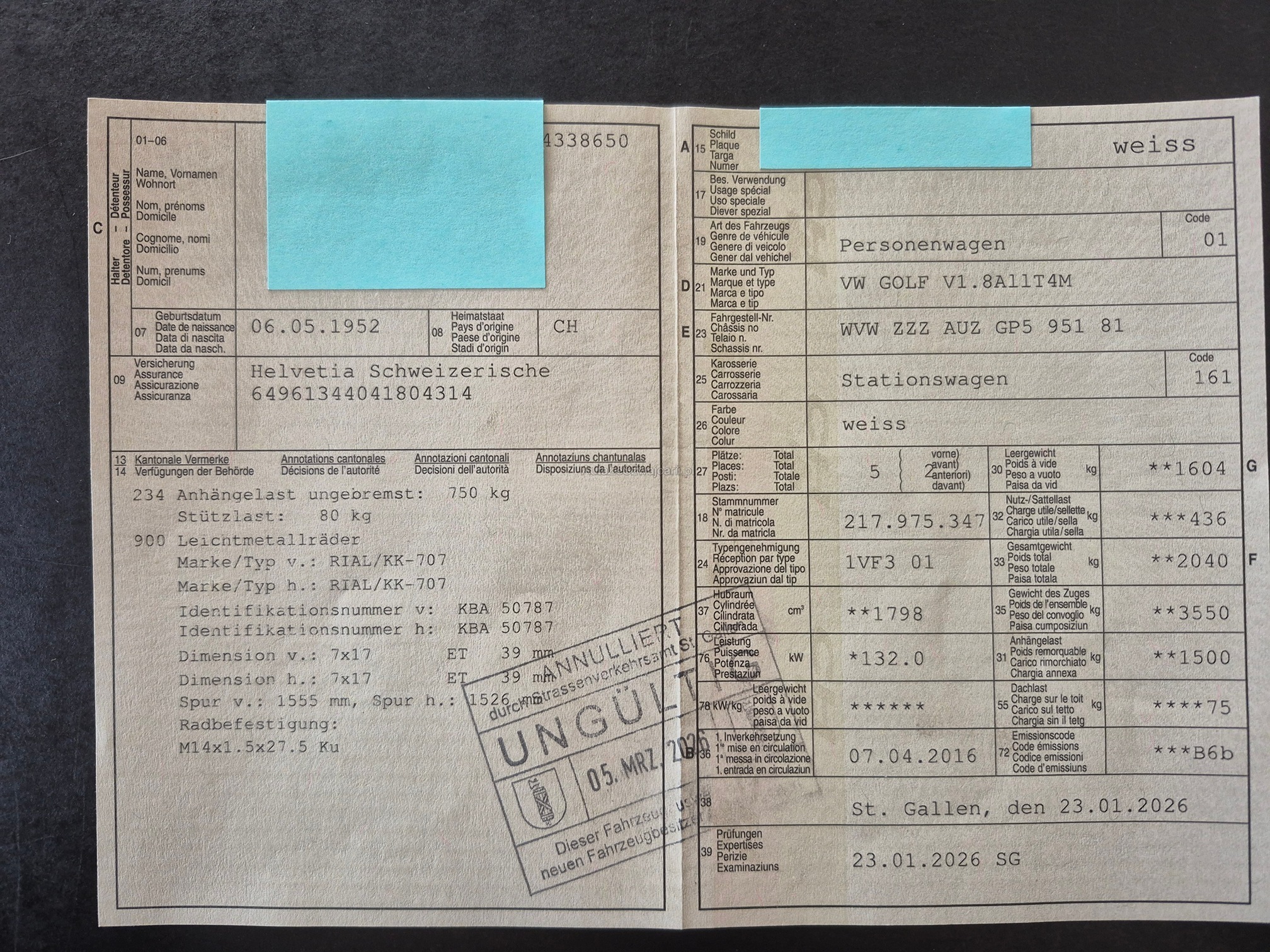 | Kommentar | Fahrzeug ab MFK: 23.01.2026! Letzter Service bei 201'773 km - 21.01.2026 Inkl. Winterradsatz! (Profil Sommer- & Winterräder sehr gut) Sicherheitspaket (Aussenspiegel elektrisch einklappbar mit Bodenbeleuchtung und Beifahrerspiegelabsenkung, Rückfahrkamera Rear Assist, Parklenkassistent Park Assist inkl. Park Pilot), Business Paket (Automatische Distanzregelung ACC, Umfeldbeobachtung Front-Assist mit City-Notbremsfunktion, Navigationssystem Discover Media), Bi-Xenon-Scheinwerfer mit Tagesfahrlicht (Leuchtweitenregulierung automatisch, Kurvenlicht inkl. Abbiegelicht, Warnleuchte für Wischwasserstand, Winterpaket, Nebelscheinwerfer, Bi-Xenon-Scheinwerfer mit Tagfahrlicht in LED-Technik, inkl. Scheinwerferwasch- anlage), Winterpaket (Scheinwerfer-Waschanlage, Scheibenwaschdüsen beheizt, Sitze: Vordersitze heizbar), Frontscheibe drahtlos beheizbar und infrarot-reflektierend, Media: Digitaler Radioempfang (DAB/DAB+), Abgedunkelte Seiten- und Heckscheibe, Multifunktionslederlenkrad (3-Speichen) inkl. Lenkradheizung inkl. Schaltwippen, ParkPilot, Park Distance Control vorne und hinten, Sonderlackierung weiss Fahrzeug muss innert 5 Arbeitstagen abgeholt werden. Verkauf ohne Garantie, Gewährleistung, Nachwährschaft, Wandelung und Minderung. |