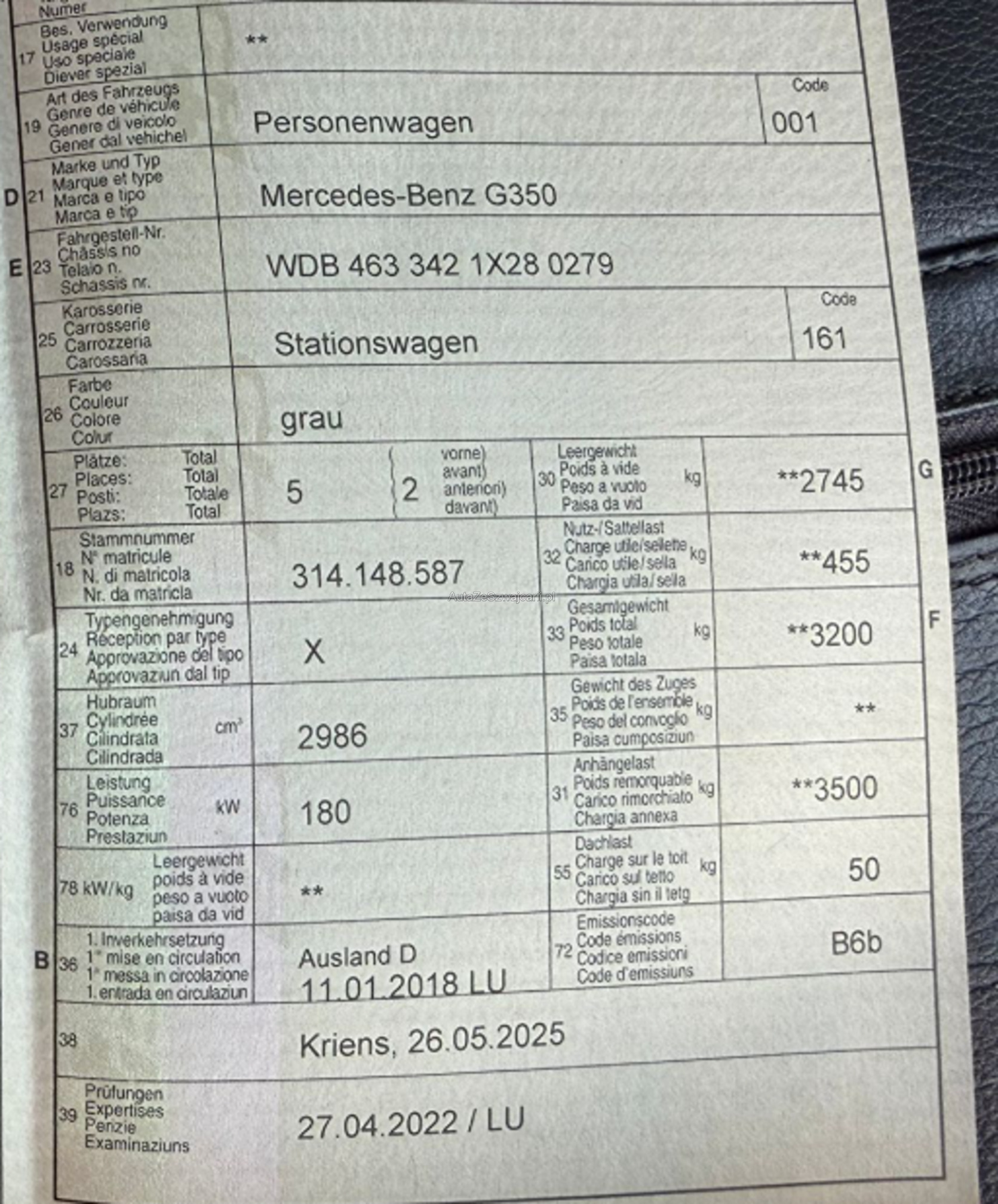 | VIN | WDBXXX |