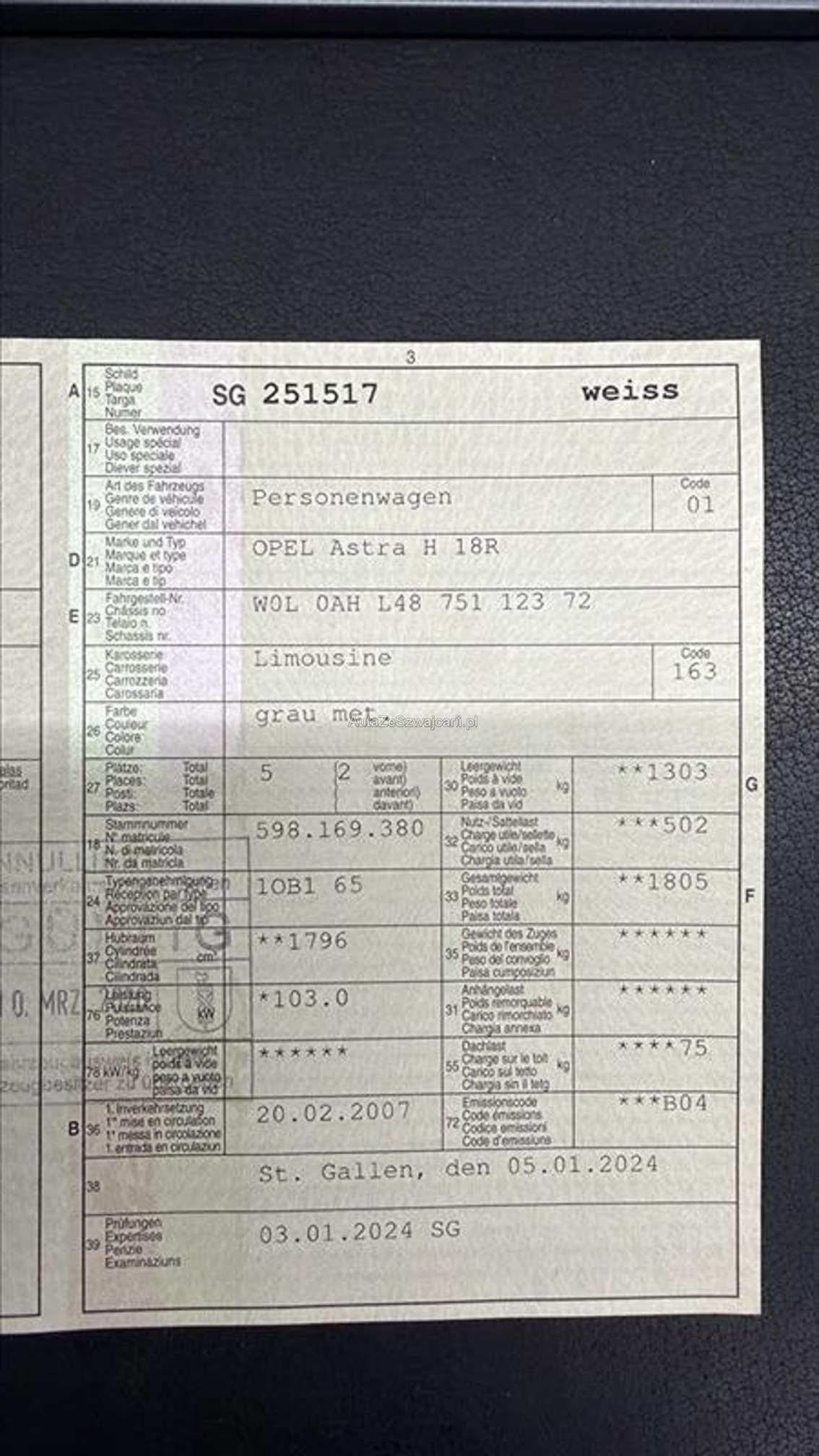 | VIN | W0LXXX |