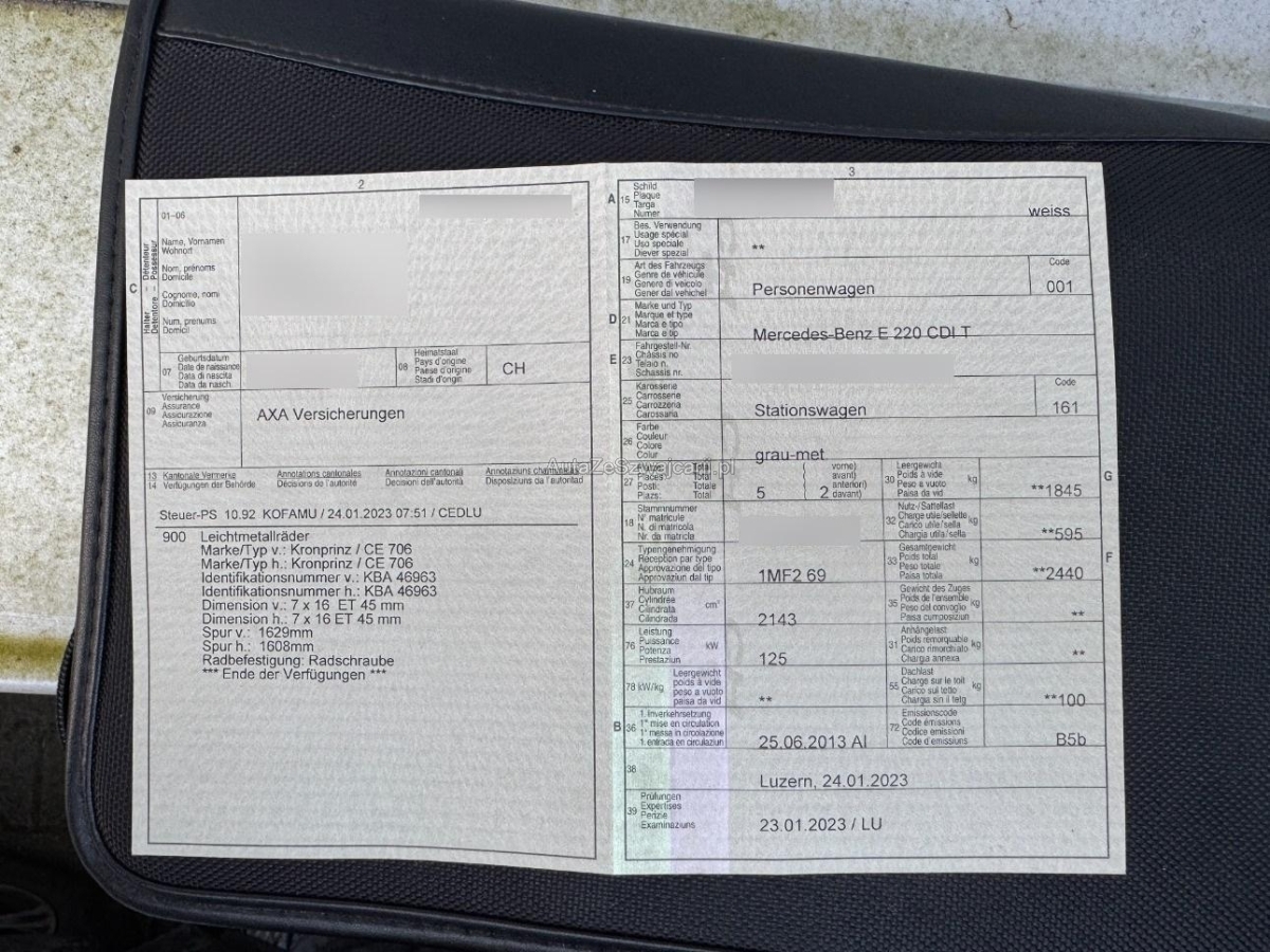 | Fahrzeugausweis | Vorhanden |