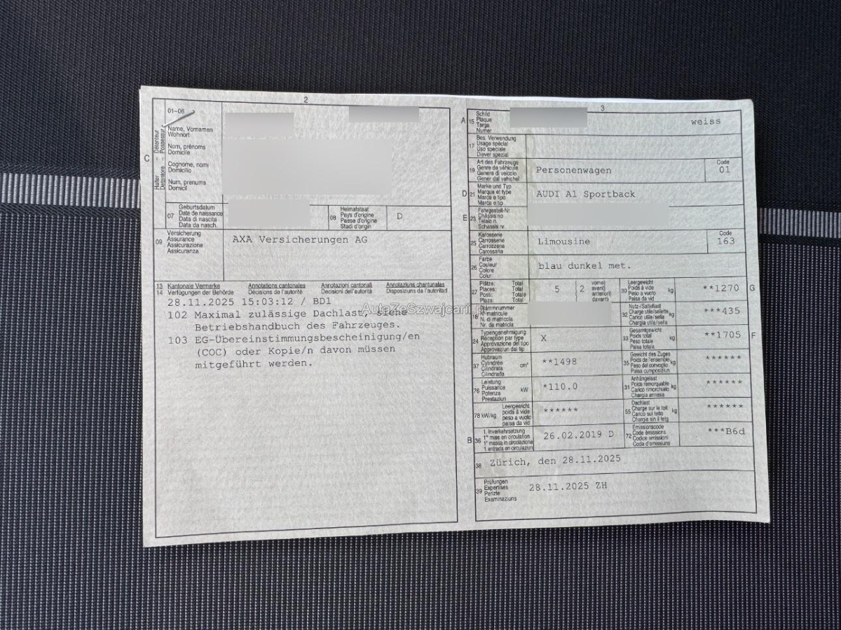 | Fahrzeugausweis | Vorhanden |