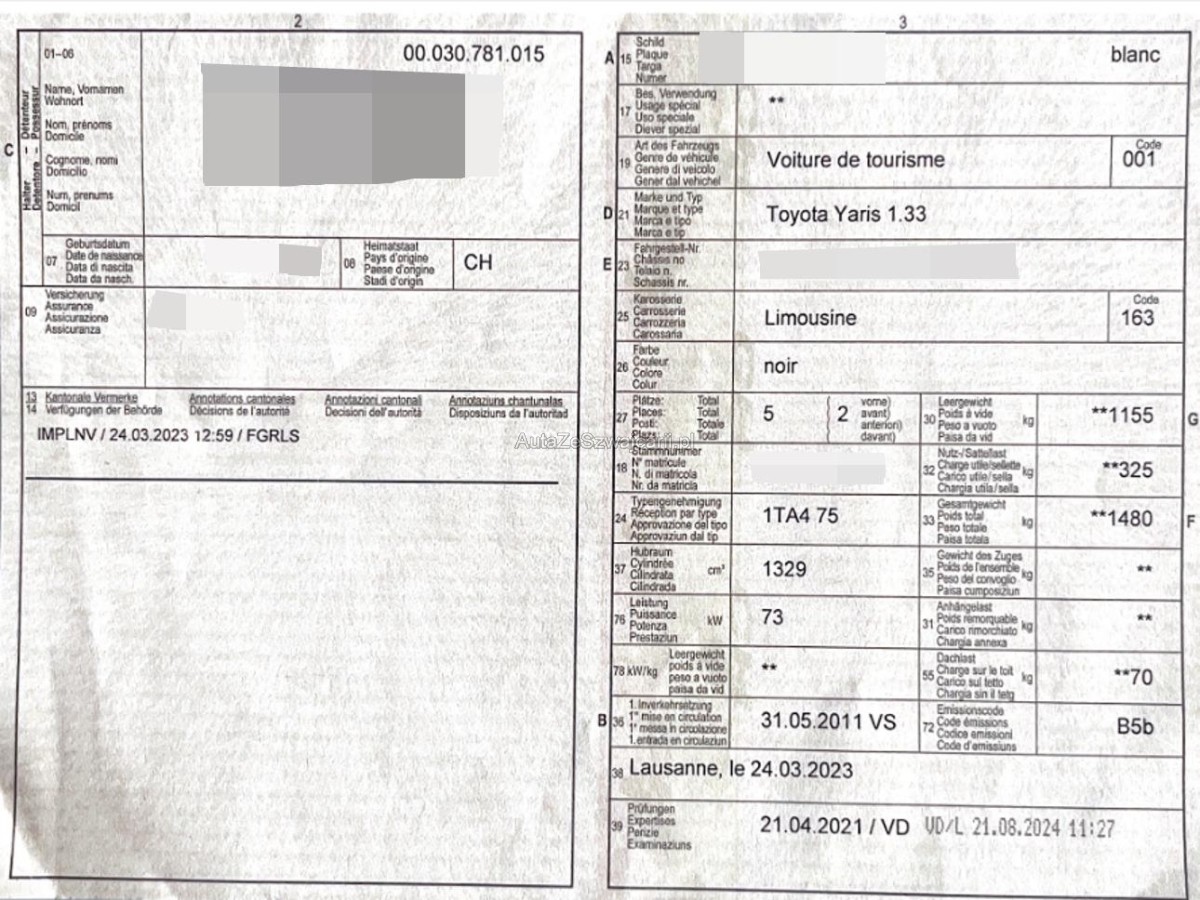 | Fahrzeugausweis | Vorhanden |