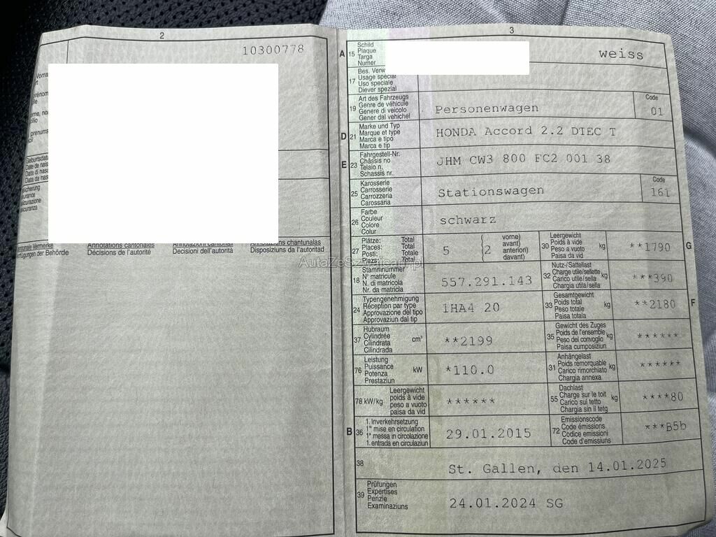 | Typ | Accord Tourer (CW)(09.2008->) |