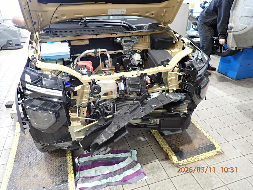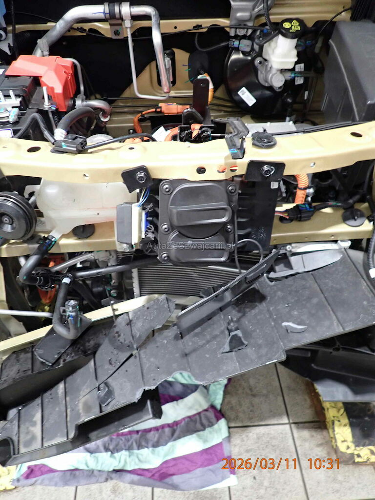 Stossstange vorne, Kühlergrill, Motorhaube, Schlossträger, Querträger, Platten Längsträger, Ladegerät, Klimakondensator, Wasserkühler etc. beschädigt.