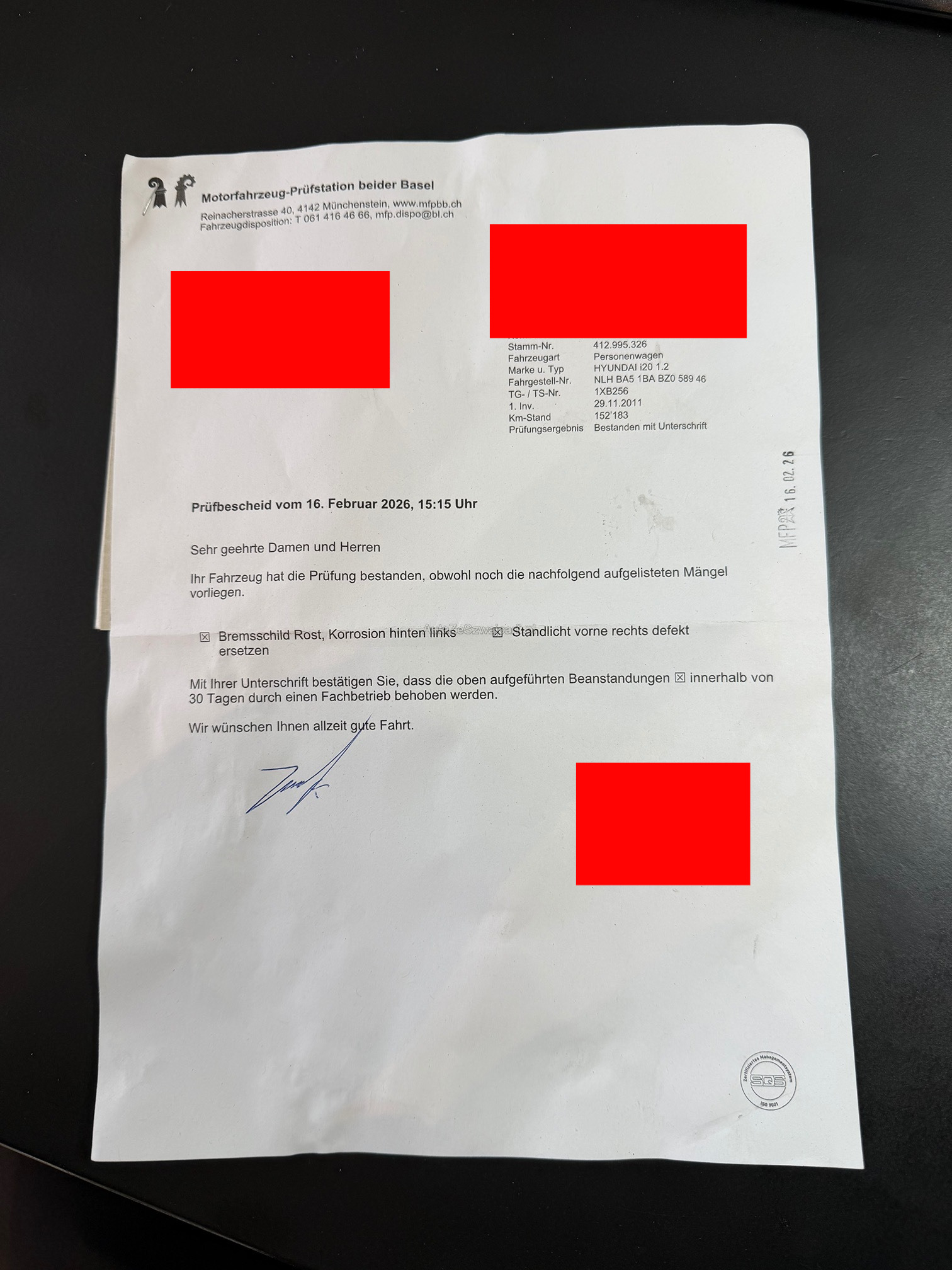 | Kommentar | - Frisch ab MFK -Muss Innert 5 Arbeitstagen abgeholt werden, ansonsten fällt eine Gebühr von 50CHF pro Tag -Auto läuft einwandfrei, jedoch wurde kein Werkstatttest gemacht |