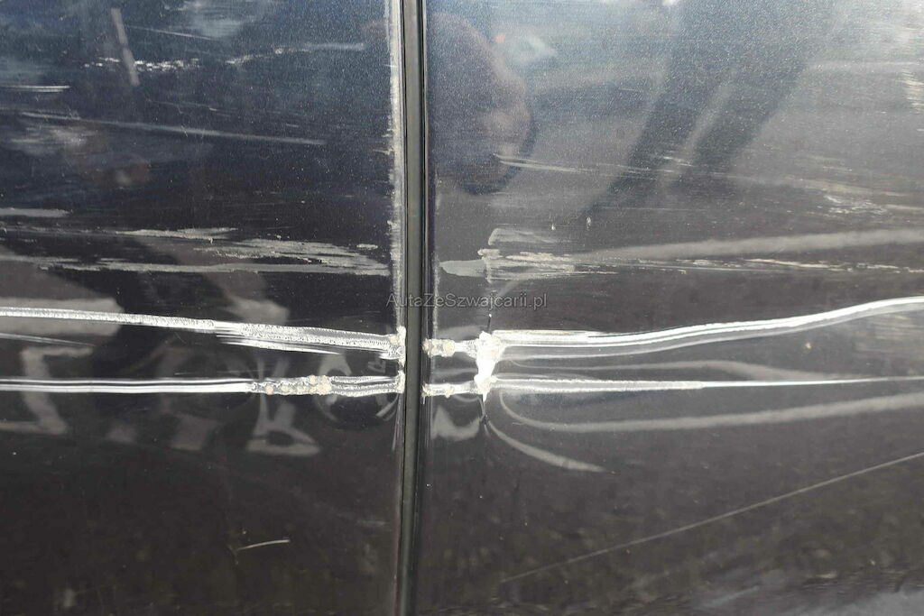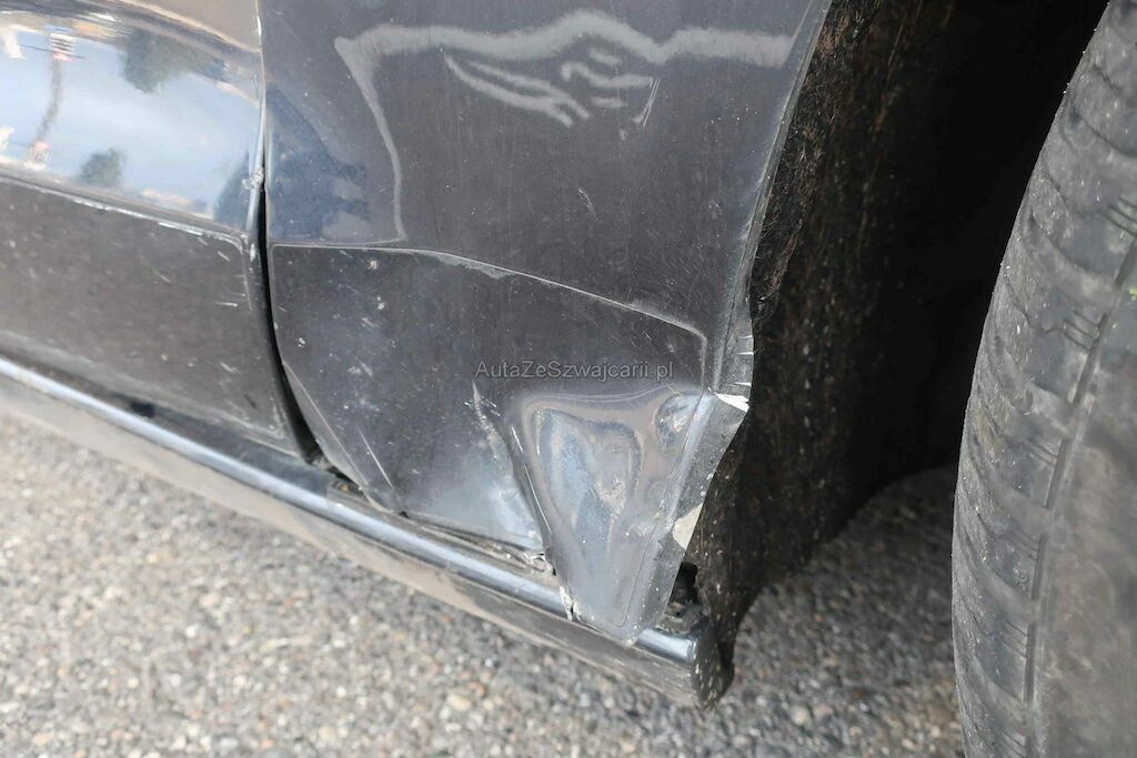 Ganze rechts Seite beschädigt. Beide Türen Kotflügel Seitenwand deformiert. Stossfänger hinten gerissen.