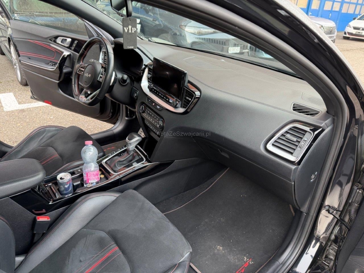 | Serienausstattung | Elektrische Handbremse, Assist: Berganfahrassistent (HAC), Räder: Tire mobility kit, Media: Online-Dienste Kia Connect inkl. 7 Jahre, Lenkrad: Lenkrad höhen- und tiefenverstellbar, Sitze: ISOFIX-Kindersitzverankerung hinten, Innenrückspiegel automatisch abblendbar, Elektronisches Stabilitätsprogramm (ESC) / elektronische Traktionskontrolle (TCS), Assist: Parksensoren vorn, Assist: Rückfahrkamera, Lenkrad: Lenkradheizung, Media: USB-Ladebuchse vorn, Garantie: KIA Garantie 7 Jahre Mobilitätsgarantie (ab 1. Inv.), Licht: Tagfahrlicht vorn und hinten, Katalysator geregelt, Sitze: Höhenverstellbare Kopfstützen vorn und hinten, Heckscheibenheizung, Sitze: Fahrersitz elektrisch verstellbar mit Lendenwirbelstütze, Media: 8 Lautsprecher, Assist: Müdigkeitserkennung, Mittelarmlehne vorne mit Staufach, Servolenkung mit elektrischer Lenkunterstützung, 3-Punkt-Sicherheitsgurte an allen Sitzplätzen, vorn höhenverstellbar, Licht: Nebelschlussleuchte, Regensensor, Media: JBL Soundsystem, Antiblockiersystem (ABS) mit elektronischer Bremskraftverteilung (EBD), Assist: Autonomer Bremsassistent (BAS), Fahrzeug- und Fussgängererkennung, Elektrische Heckklappe, Lackierung: Uni-Lackierung, Start-/Stopp-Automatik, Lenkrad: Schaltwippen hinter dem Lenkrad, Assist: Ausstiegswarnung (SEW), Media: Android Auto und Apple CarPlay, Media: 10.25"-Navigationssystem, DAB+, Räder: 4 Leichtmetallfelgen 7,0 J x 17" -225/45 R17, Aluminium Sportpedale, Sonnenblende Fahrer und Beifahrerseite mit beleuchtetem Spiegel, Media: Bluetooth, Licht: LED-Scheinwerfer, Licht: Nebelscheinwerfer vorn, Licht: LED-Tagfahrlicht hinten, Aussenspiegel elektrisch verstellbar, Licht: Drittes Bremslicht, Getriebe: 7-Gang DSG, Türgriffe aussen in Wagenfarbe, Media: Induktive Ladestation für Smartphone, Assist: Geschwindigkeitsbegrenzer, Aussenspiegel elektrisch beheiz- und einklappbar, Assist: Automatische Parkhilfe, Assist: Fernlichtassistent, Assist: Totwinkel-Assistent, Klima: 2-Zonen-Klima-Automatik, Airbag: Airbag Fahrer und Beifahrer, Beifahrerairbag abschaltbar Seitenairbags vorn, Kopfairbags (Vorhang) vorn und hinten, Heckscheiben-Wisch-/Waschanlage, Sitze: Sitzheizung hinten, Räder: Reifendruckkontrollsystem (TPMS), Licht: LED-Tagfahrlicht vorn, Media: Instrumentenanzeige Supervision Digital 12.3", Wegfahrsperre elektronisch, Assist: Intelligente Tempolimitwarnung, Assist: Parksensoren hinten, Sitze: Sitzheizung vorne, Polster: Sitzbezüge Wildleder mit GT Logo, 12 V-Anschluss vorn, Beheizbare Frontscheibe, Assist: Tempomat mit Distanzassistent, Start-/Stop-Knopf mit Smart Key, Assist: Autobahnassistent, Sitze: Sitzlehne der 2. Sitzreihe umklappbar, asymmetrisch 60:40, Doppelrohrauspuffanlage, Lenkrad: Lenkrad und Schaltknauf lederbezogen, Gurtstraffer und Gurtkraftbegrenzer vorn, Assist: Stauassistent, Zentralverriegelung mit Fernbedienung, Licht: Aktives Bremslicht (ESS), Assist: Rückfahr-Querverkehrswarner, Fensterheber elektrisch vorn und hinten, Assist: Spurhalteassistent aktiv, Sitze: Fahrersitz mit Memoryfunktion, Assist: Lichtsensor |