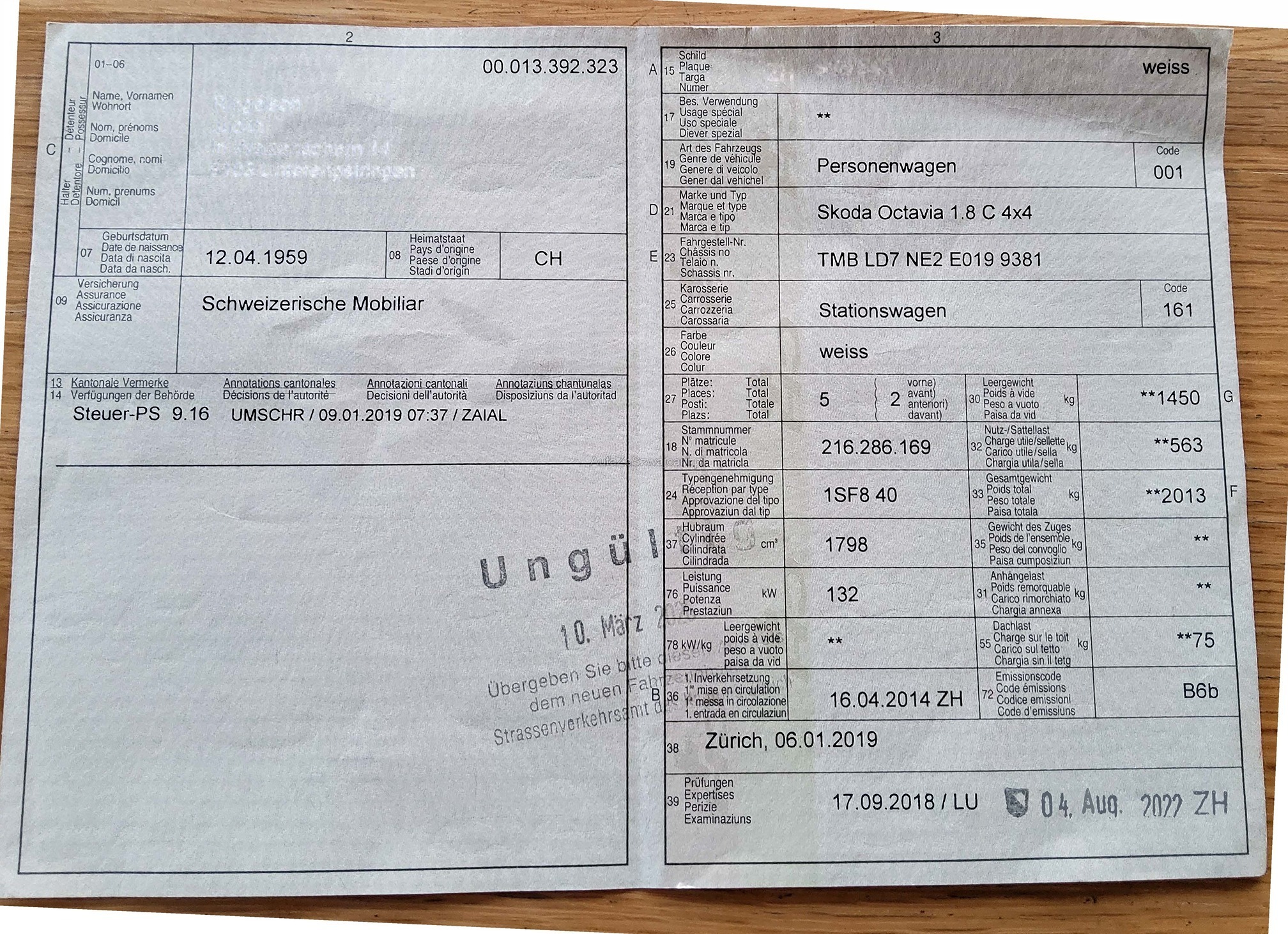 | Kommentar | Es wurde kein Werkstatttest gemacht (für sichtbare oder nicht sichtbare Mängel wird nicht gehaftet). Wir testen und prüfen nicht alle Funktionen vom Fahrzeug. Alters-, nutzungs- und laufzeitbedingte Mängel am Fahrzeug sind nicht ausgeschlossen und nicht verhandelbar. Das Risiko liegt somit vollumfänglich beim Käufer. Nach Erhalt des Zuschlags, gibt es keine Nachverhandlung, auch wenn nicht deklarierte Mängel zum Vorschein kommen. Ab Platz ohne Garantie oder Gewährleistung, Wandelung und Minderung werden wegbedungen. |