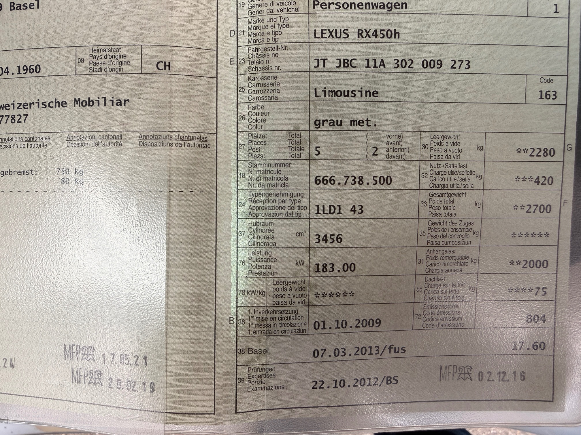 | Kommentar | Alle Bremsen zu erneuern. Bremssattel vorne zu erneuern. Kein weiterer Test durchgeführt. |