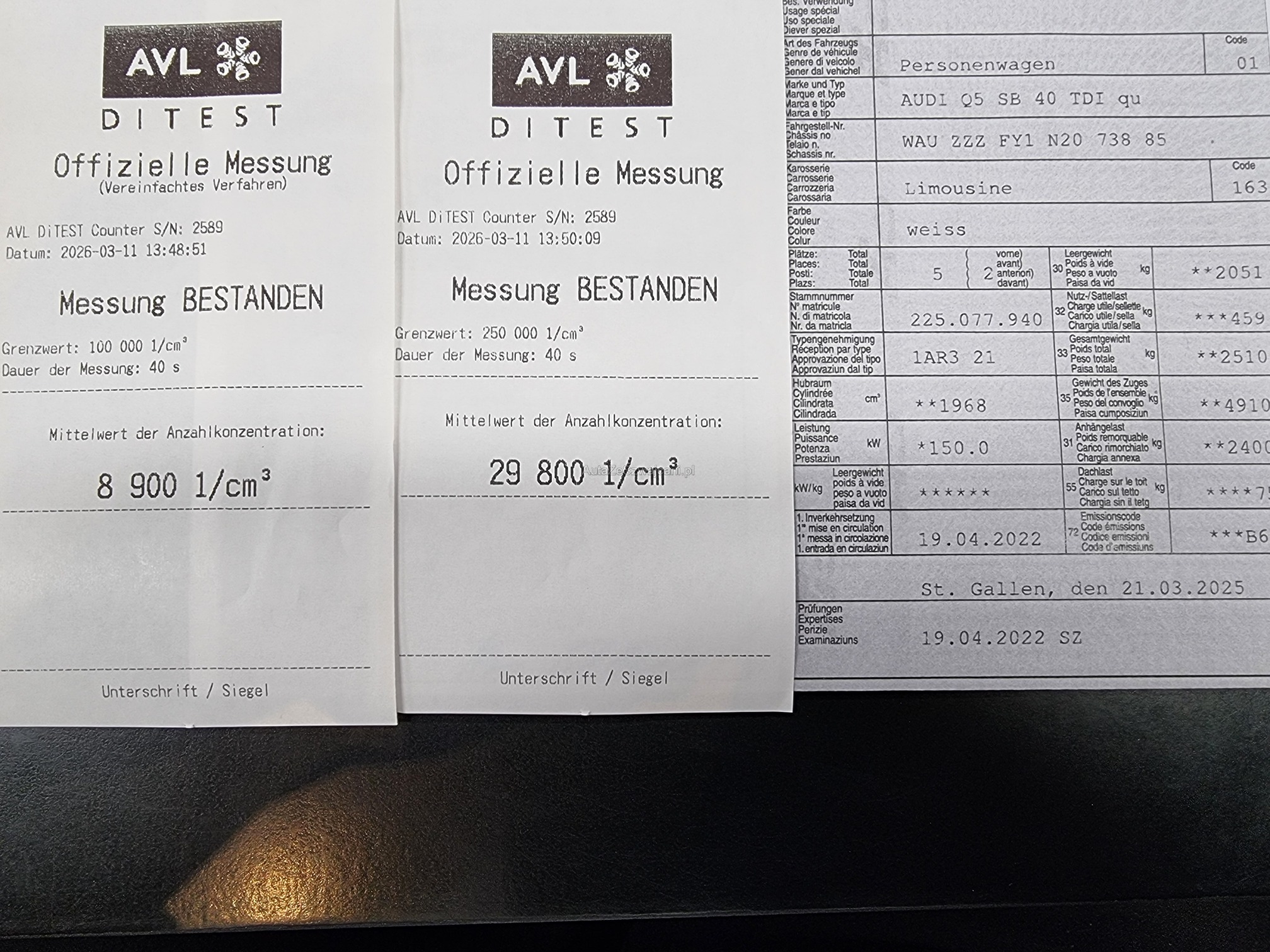 | Kommentar | Voll ausgestatteter AUDI Q5 SB mit Panoramadach, Leder- Alcantara Sportsitzen, Head-up und Assistenzsystemen Am Fahrzeug wurde kein Werkstatttest gemacht (Für sichtbare oder nicht sichtbare Mängel wird nicht gehaftet). Wir testen & kontrollieren nicht alle Funktionen des Fahrzeugs. Das Risiko liegt somit vollumfänglich beim Käufer. Ab Platz ohne Garantie, Wandelung und Minderung werden wegbedungen. |
