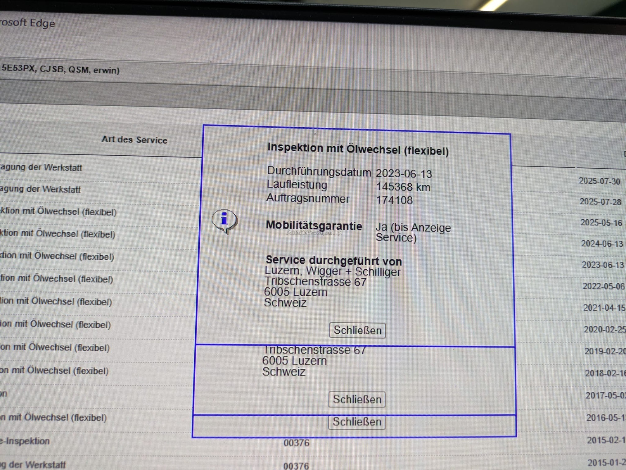 | Kommentar | Ab platz Ohne Garantie Wandlung oder Minderung sowie gesetzliche Gewährleistung weggebunden. Keine technische Prüfung diverse dellen und Kratzer siehe Fotos. Hinterachse macht Geräusche. Fahrzeug muss spätestens 7 Tage nach Verfügbarkeit abgeholt werden ansonsten werden Parkkosten von Fr 20.- pro Tag verrechnet. |