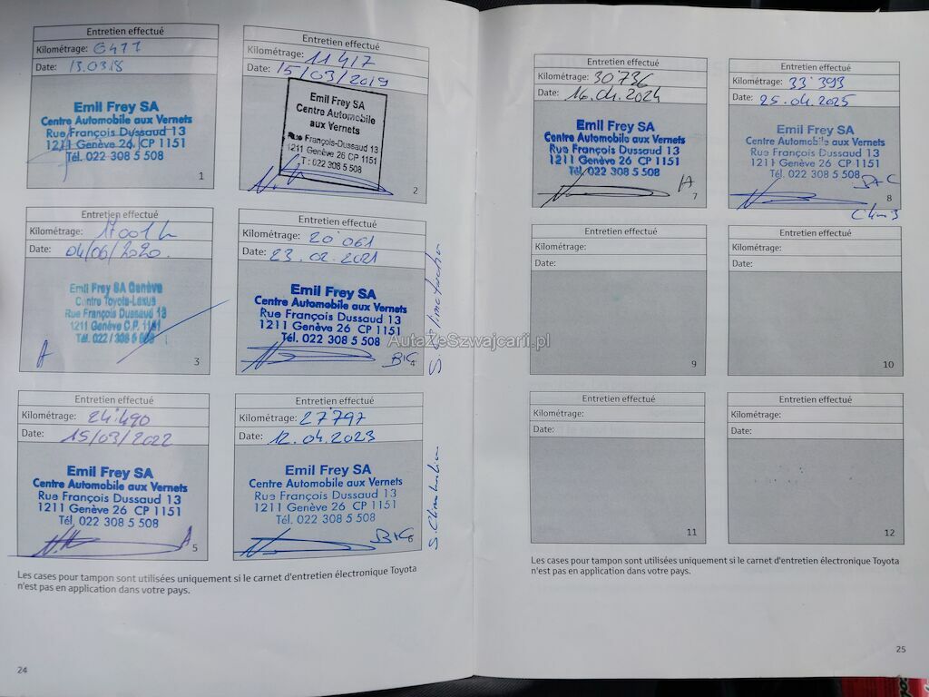 Tous les services ont été effectués chez un agent Toyota.
