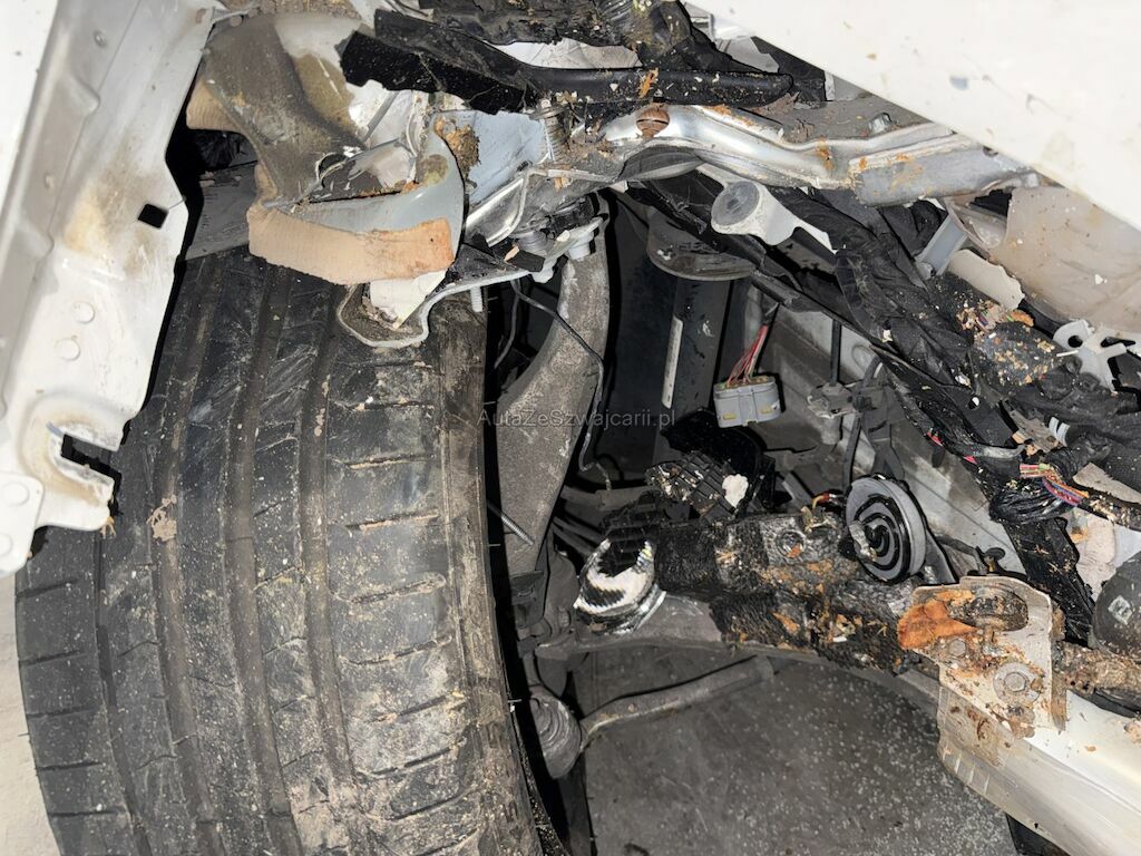 Front- und Seitenschaden links: Front rechts eingedrückt bis zur Vorderachse. Vorderachse mit Träger und Lenkung beschädigt. Beide Türen links eingedrückt und Seitenwand hinten stark eingedrückt. Aufzählung nicht abschliessend. Motor konnte nicht gestartet werden.