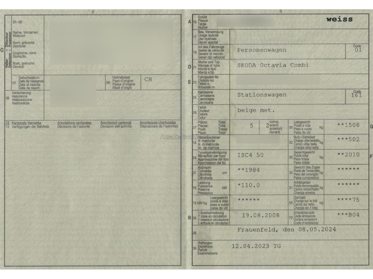 | Fahrzeugausweis | Vorhanden |