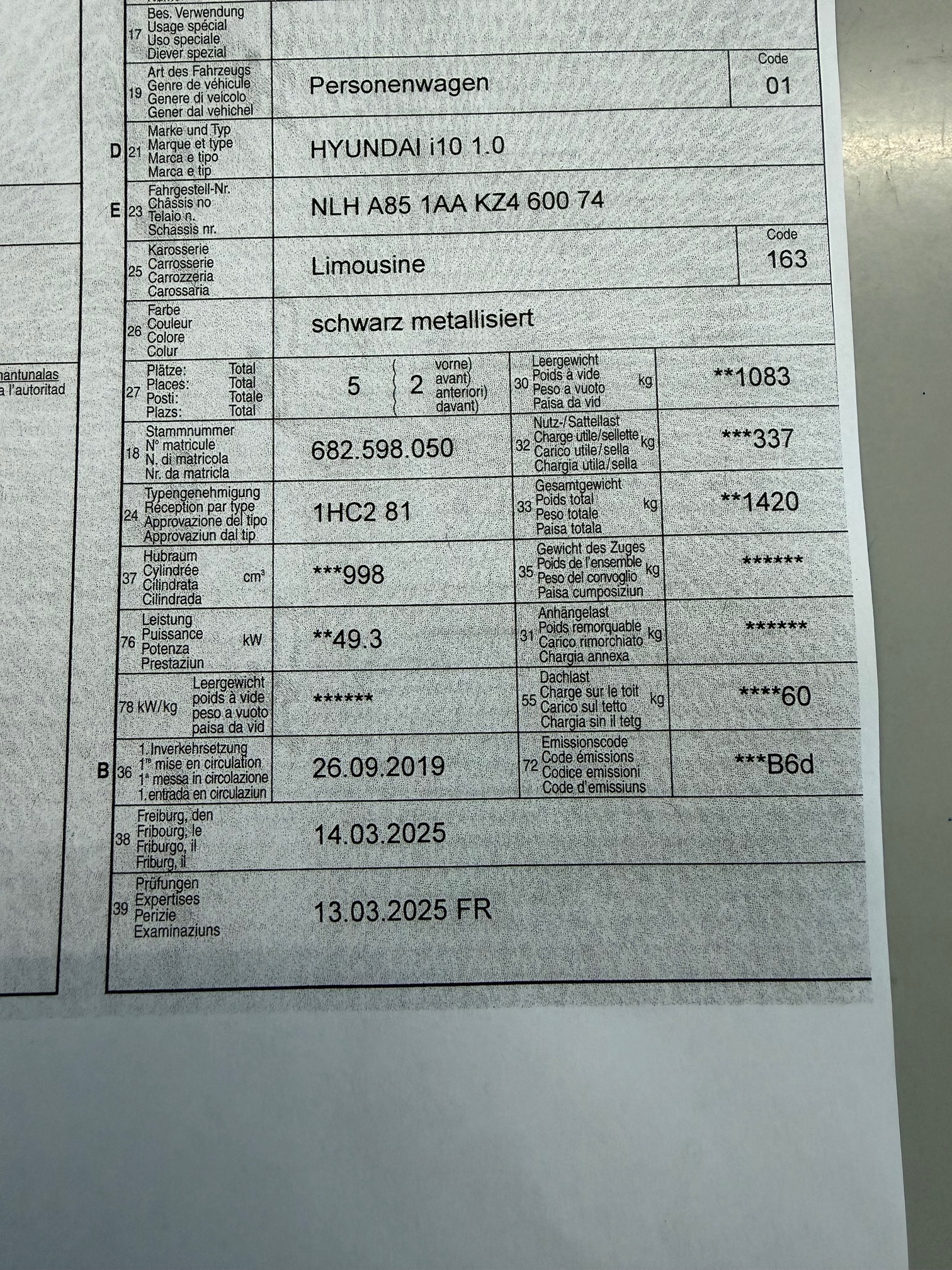 | Kommentar | Fahrzeug mit sehr wenig km, Jahresservice ist fällig, Fahrzeug hat nur Winterbereifung und diese müssen ersetzt werden, Schaden an Stossstange vorne links unten. (siehe Foto) kleine gebrauchsspuren aber keine Beulen. |
