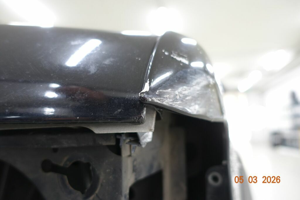 Der Scheinwerfer sowie der Blinker VL waren nicht vor Ort. Jedoch anhand des Schadenbildes, kann davon ausgegangen werden, dass diese gebrochen sind. Der Kotflügel VL ist deformiert und ist leicht an der Motorhaube angestanden. Diese ist im Kantenbereich leicht zerkratzt. Die Stossstange sowie der Nebelscheinwerfer VL sind gebrochen. Der Träger darunter ist verzogen.
