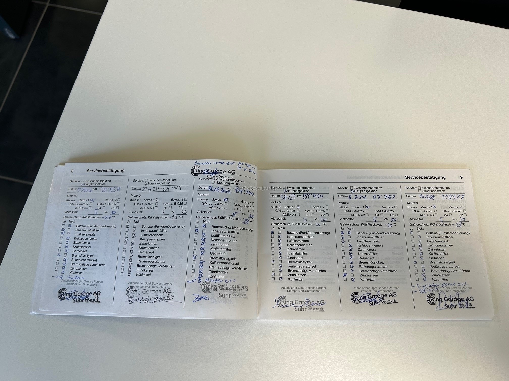 | Kommentar | Kein Werkstatttest durchgeführt. Für sichtbare und nicht sichtbare Mängel wird nicht gehaftet. Keine Minderung und Wandelung möglich. Gemäss Vorbesitzer hat es zeitweise Öltropfen am Boden wenn das Fahrzeug stand. Die Ventildeckeldichtung wurde ersetzt. Das Fahrzeug ist Servicegepflegt.und aus erster Hand (Letzter Service 16.07.2025 / Km 108977. Letzte MFK 18.12.2025.Die Schwelle rechts hat eine Delle.Sossstange vorne rechts angefahren.Stosstange hinten rechts Farbschaden. |