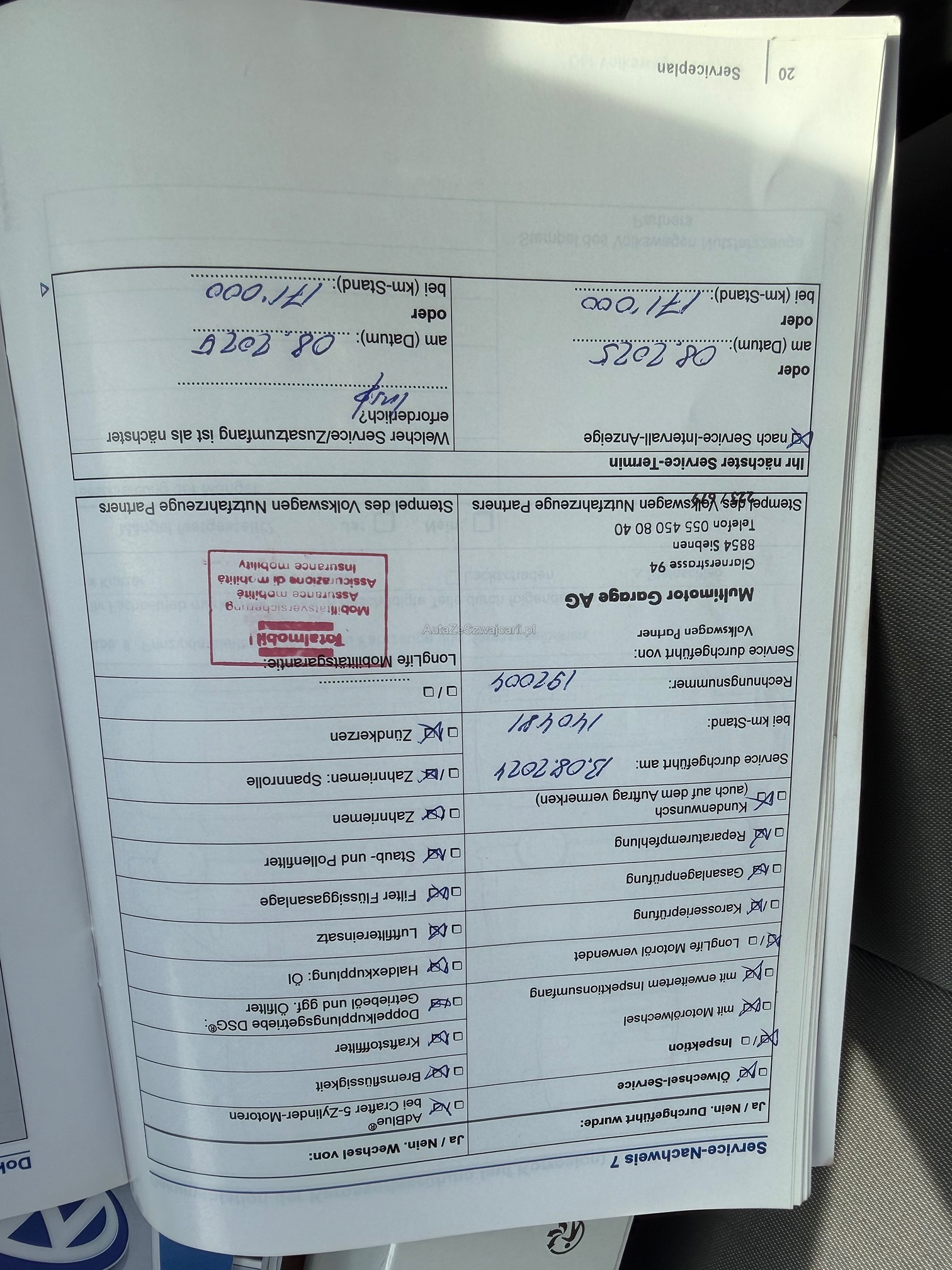 | Kommentar | Eintauschfahrzeug Karosserie diverse Beschädigungen. Fahrzeug läuft und fährt gut. Fahrersitz gerissen Aussenspiegel kaputt Haube Steinschläge Nach Zuschlag muss das Fahrzeug innert 3 Tagen abgeholt werden. Ab den 4 Tag fallen gebühren von 50.- pro Tag an. Kein Werkstatttest durchgeführt, wird ab Platz ohne Garantie verkauft. Bei einer Fahrzeugbeschreibung kann immer etwas vergessen oder nicht gesehen werden. Das Risiko liegt somit vollumfänglich beim Käufer. Um Missverständnisse zu vermeiden kann das Fahrzeug auf Voranmeldung besichtigt & getestet werden. Wird davon bewusst kein Gebrauch gemacht, liegt die Verantwortung beim Käufer. Nach Zuschlag, keine Nachverhandlungen möglich. Ab Platz ohne Garantie, Wandelung und Minderung werden wegbedungen. Bei Fragen |