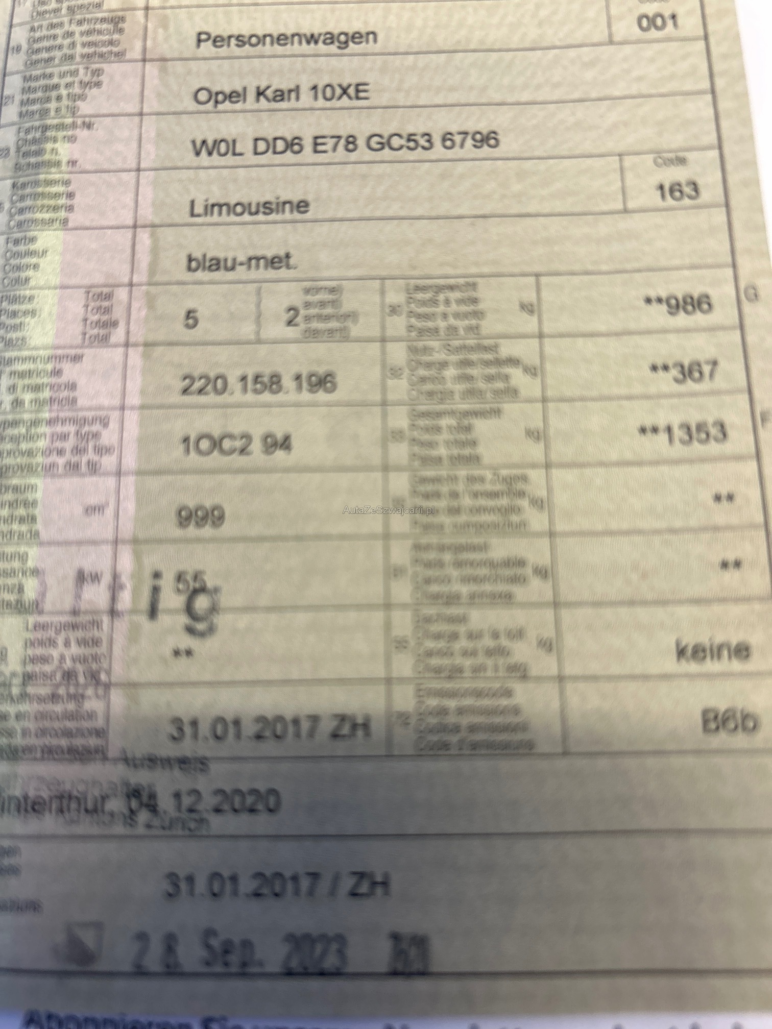 | Kommentar | Fahrzeug im Kundenauftrag. Am wurde kein Werkstatttest gemacht (Für sichtbare oder nicht sichtbare Mängel wird nicht gehaftet). Wir testen & kontrollieren nicht alle Funktionen des Fahrzeugs. Das Risiko liegt somit vollumfänglich beim Käufer. Nachdem der Höchstbietende den Zuschlag erhalten hat, gibt es keine Nachverhandlung, auch wenn nicht deklarierte Mängel zum Vorschein kommen sollten. Ab Platz ohne Garantie, Wandelung und Minderung werden wegbedungen. Fahrzeug im Kundenauftrag. Am Fahrzeug wurde kein Eintauschtest gemacht. |
