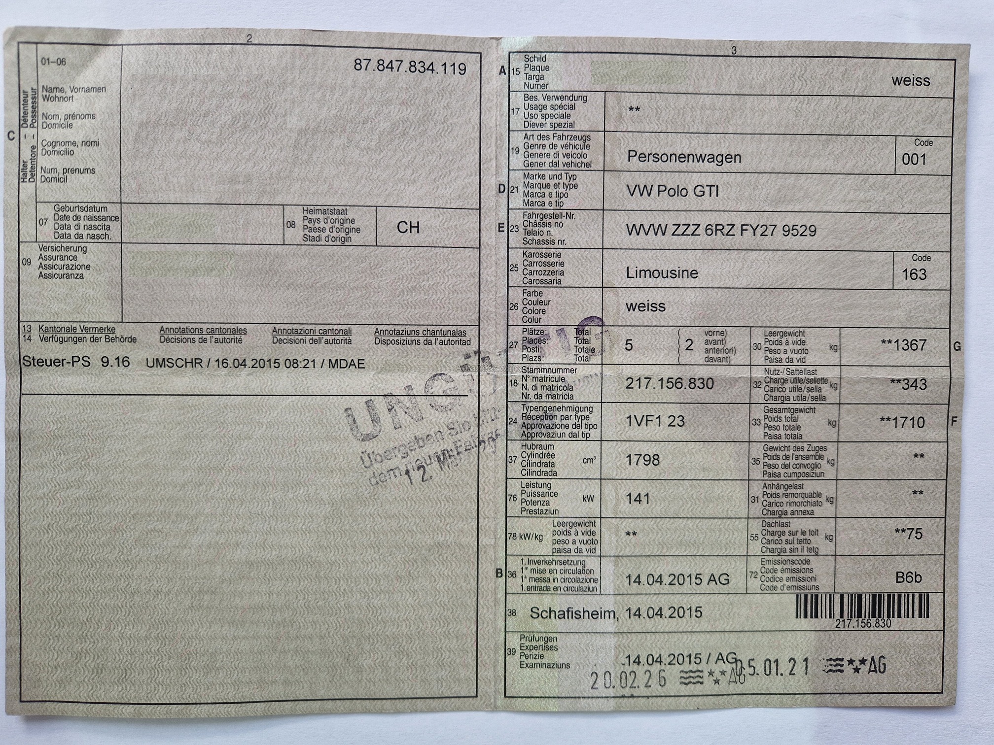 | Zahnriemen gewechselt | No |