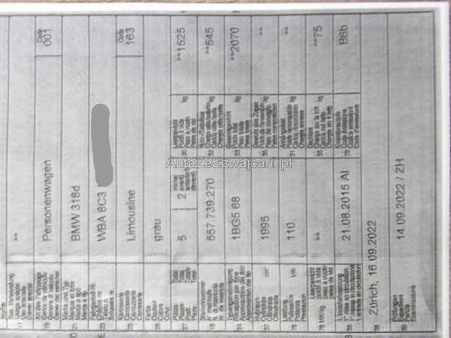 | Condition_and_Equipment | Zustand Fahrzeug ist fahrbar. Bereifung Fahrzeug wird mit Winterräder abgegeben. Schlüssel Nur ein Schlüssel vorhanden. Kategorie Das Fahrzeug wird vom Besitzer noch benutzt. Weitere wichtige Hinweise Siehe Fotos / Ohne Gewähr --- Rechts Anstoss rechts im Bereich der B-Säule. Tür vorne rechts ist eingedrückt. Weitere Beschädigungen Komplettes Navi mit Bildschirm und Bedienteil wurde gestohlen. Dachrahmen mit B-Säule rechts vom Einbruch beschädigt. Kabelstrang beschädigt. --- Serienaustattung Klimaanlage inkl. Mikrofilter Seitenairbag für Fahrer und Beifahrer Radio BMW Professional Sport-Lederlenkrad Reifendruck-Kontrollsystem RDC Durchladesystem Regensensor Nebelscheinwerfer vorne Dynamische Stabilitäts-Control DSC Servotronic Kindersitzbefestigung Isofix Fahrer und Beifahrer-Airbag Velours-Fussmatten Uni-Lackierung Multifunktions-Lenkrad Fensterheber elektrisch vorne + hinten Kopfairbags vorne + hinten Kopfstützen im Fond klappbar Dieselpartikelfilter Digital audio DAB-Tuner ABS Antiblockiersystem inklusive Bremsassistent Interieurleisten Satinsilber matt Auto Start Stopp Funktion Details siehe gültige Preisliste des Importeurs Freisprecheinrichtung mit USB-Schnittstelle Keine Gewähr auf die Angaben der Serienausstattungen BMW Service Plus 10 Jahre/ 100'000 km Sonderausstattung Navigationssystem Professional Pack Raucher Pack Licht Park Distance Control PDC vorn und hinten Klimaautomat 2-Zonen inkl. Mikrofilter Bereifung mit Notlaufeigenschaft Speed Limit Info Instrumentenkombination/ erweitert ConnectedDrive Services Real Time Traffic Information Remote Services |
