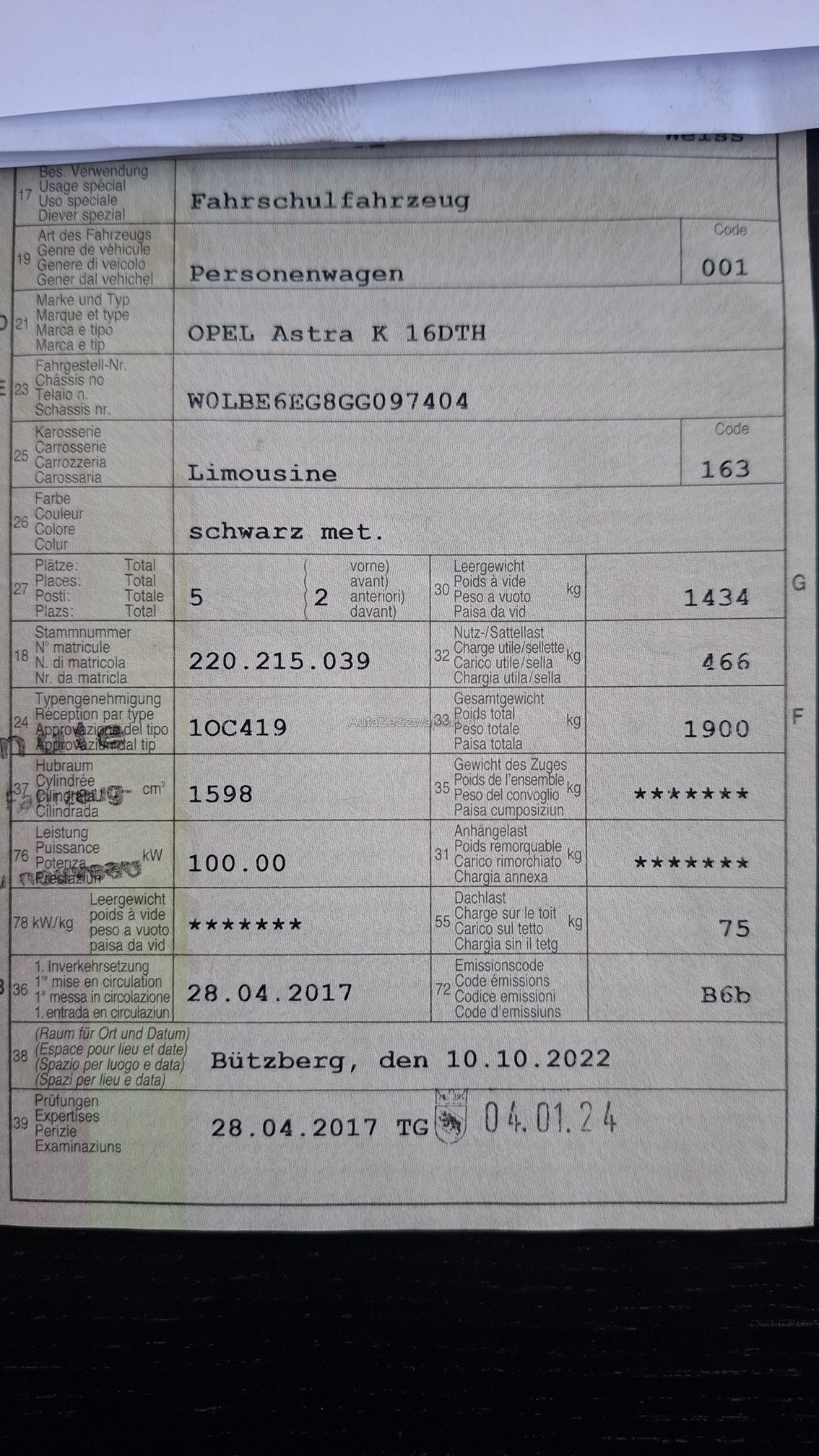 | Kommentar | Hervoragende Ausstattung.! Massage Sitz Fahrer, Belüftet + Sitzheizung Fahrer+Beifahrer, LED Scheinwerfer, Spurhalteassistent, Notbremsassistent, Ab Grossem Service siehe Serviceheft Fährt und Schaltet einwandfrei Partikelfilter in Ordnung Test Vorhanden. Diverse Kratzer und Dellen auf den Fotos ersichtlich Für die MFK sind keine Investitionen nötig, Fahrschulpedale und Spiegel sind noch Montiert. Kann jedoch auch demontiert werden und als Normales Fahrzeug Geprüft werden Für sichtbare oder nicht sichtbare Mängel wird nicht gehaftet. Wir testen & kontrollieren nicht alle Funktionen vom Fahrzeug. Das Risiko liegt somit vollumfänglich beim Käufer. Nachdem der Höchstbietende den Zuschlag erhalten hat, gibt es keine Nachverhandlung, auch wenn nicht deklarierte Mängel zum Vorschein kommen sollten. Fahrzeug wird ab Platz verkauft ohne Garantie und ohne jegliche Nachwährschaft. Wandelung und Minderung werden wegbedungen. Es Gelten Unsere AGBS |