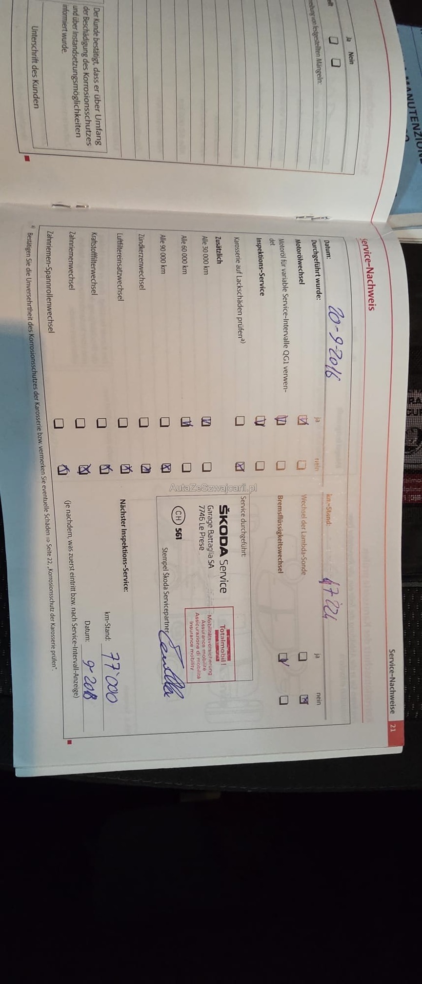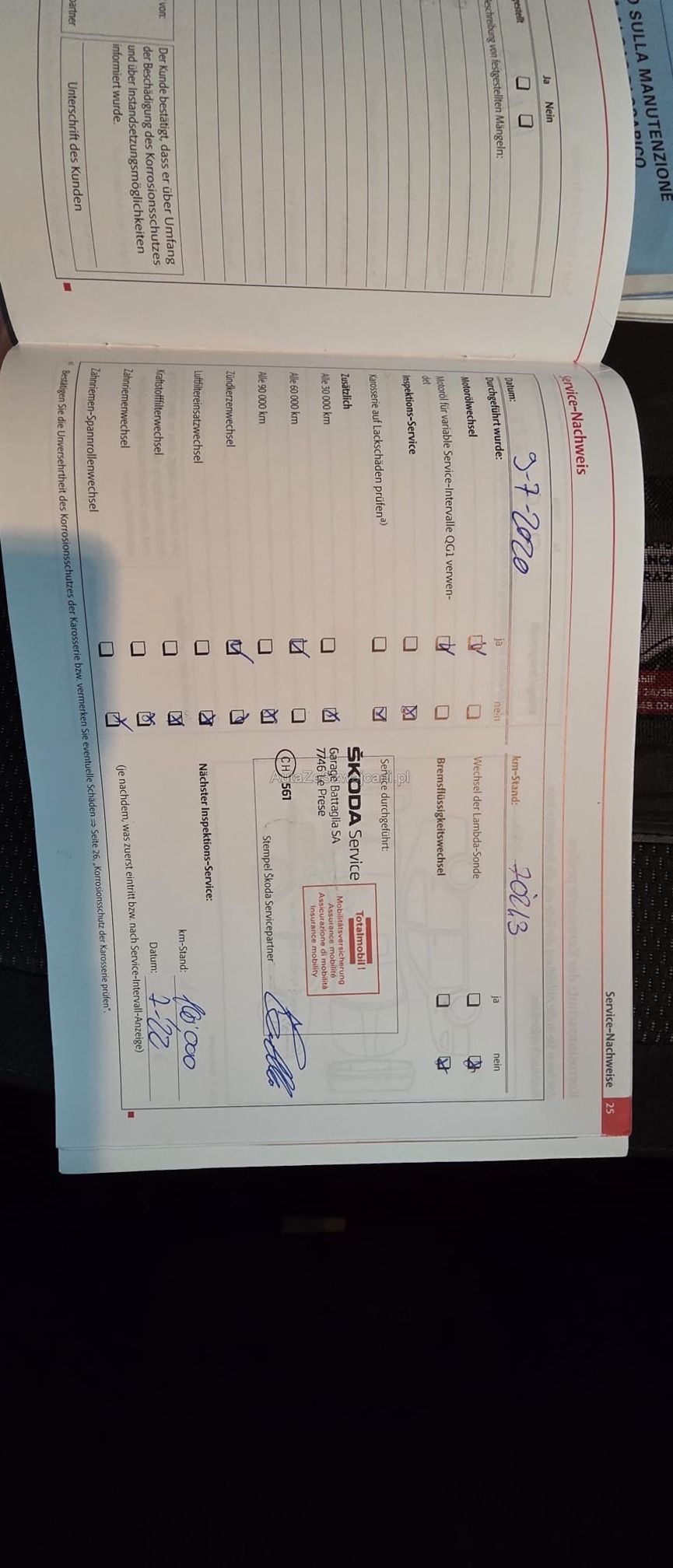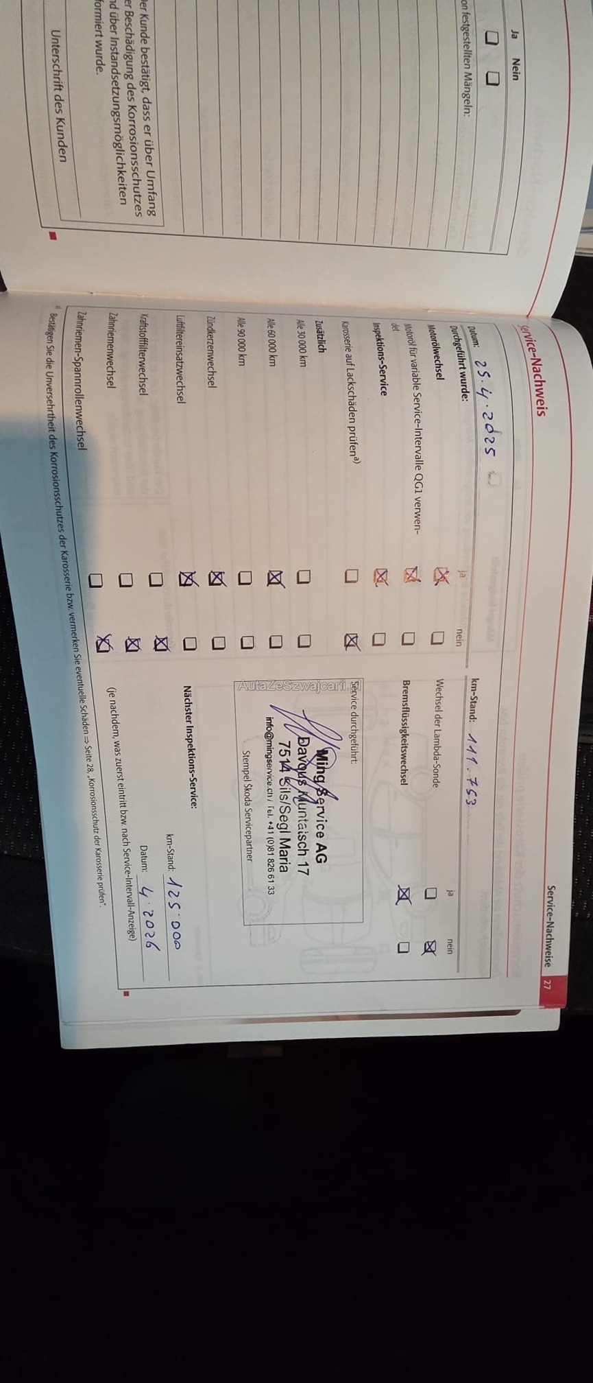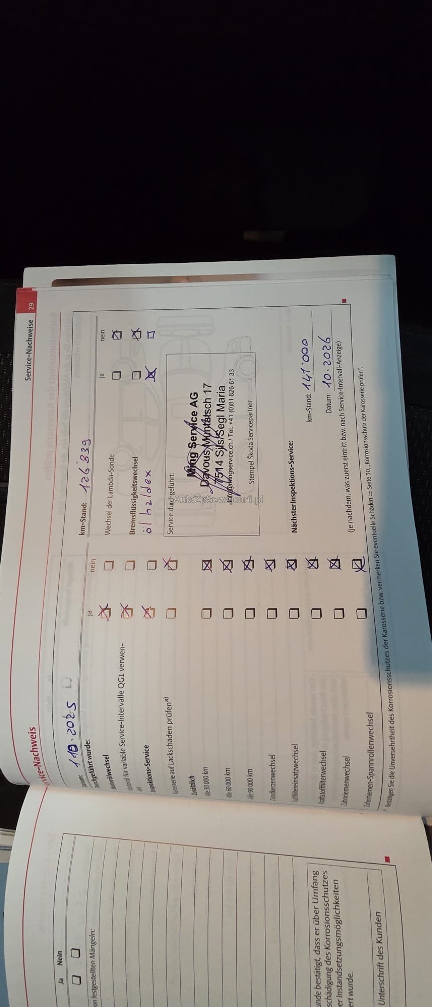 | Kommentar | Es wurde kein Werkstatt-Test durchgeführt, die Bremsen müssen ersetzt werden. Der Motor verbraucht kein Öl; die Arbeiten an den Kolben wurden im Jahr 2024 vor der MFK-Prüfung durchgeführt. Bezüglich Rost und Karosserieschäden verweisen wir auf die Fotos. |