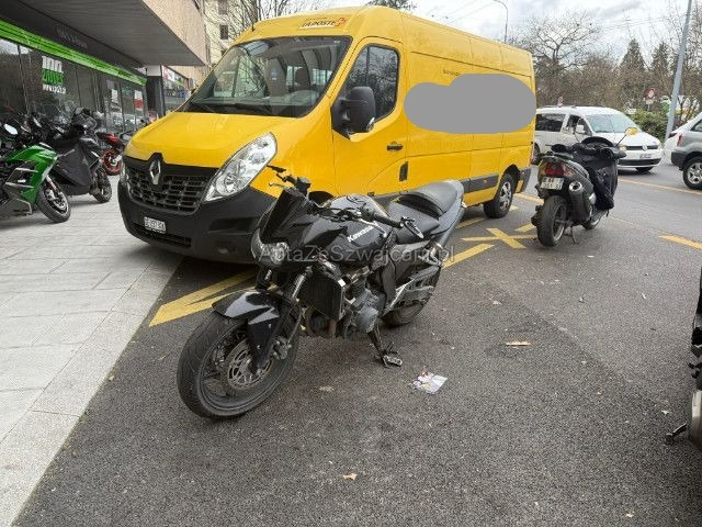 | Condition_and_Equipment | Zustand Fahrzeug muss transportiert werden (Höhe und Breite beachten). Fahrzeug ist NICHT fahrbar. Fahrzeug ist NICHT rollbar. Schlüssel Nur ein Schlüssel vorhanden. Weitere wichtige Hinweise Fahrzeugpapiere und Fahrzeugschein während der Begutachtung nicht verfügbar --- Links Linke Seite beschädigt. Ist auf die linke Seite gefallen. Verschalung oben links verkratzt. Verschalung hinten links verkratzt. Front Schutzblech vorne defekt. Lenker verbogen. Motor Kupplungsdeckel beschädigt. Sonstige Schäden Div. Teile sind leicht beschädigt. Weitere Beschädigungen Lenker, linker Hebel, linker Rückspiegel, linke Verkleidung, Tank, hintere Verkleidung, linke Fußraste, Halterung der linken Fußraste vorne und hinten, Tank beschädigt. --- Ausstattung Elektrostarter |