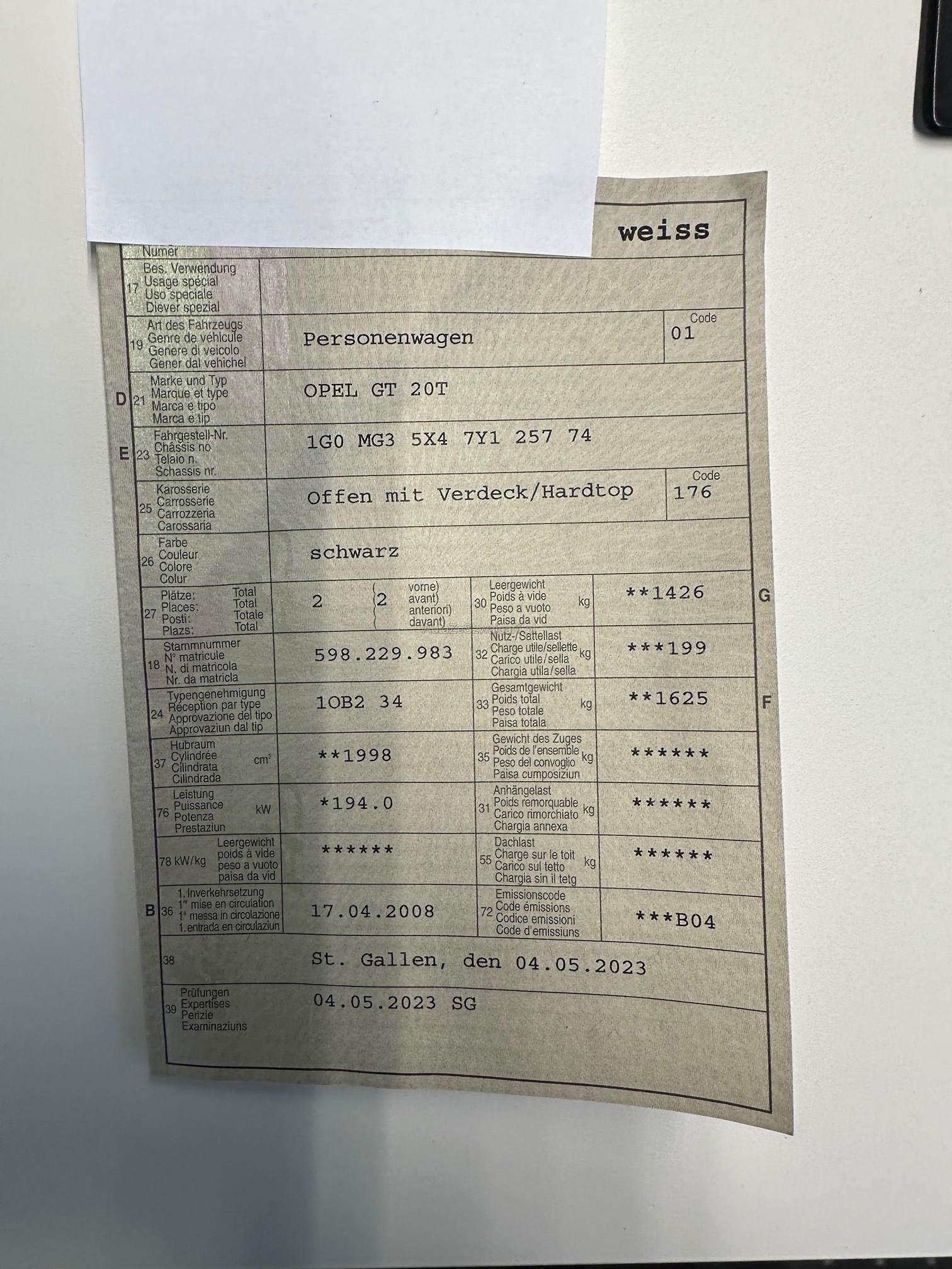 OPEL GT 20T