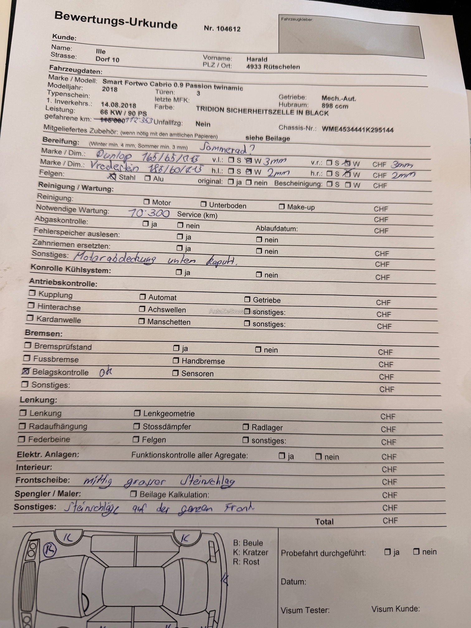 | Kommentar | Ganz leichter Rauchgeruch. Das Fahrzeug ist technisch in einwandfreiem Zustand. Es sind keine Mängel bekannt. Die Karosserie weist normale Gebrauchsspuren auf. Jede Gewährleistung wird wegbedungen insbesondere sind Wandlung und Minderung ausgeschlossen. Eine Garantie wird nicht gewährt. Preise werden nicht nach verhandelt. |