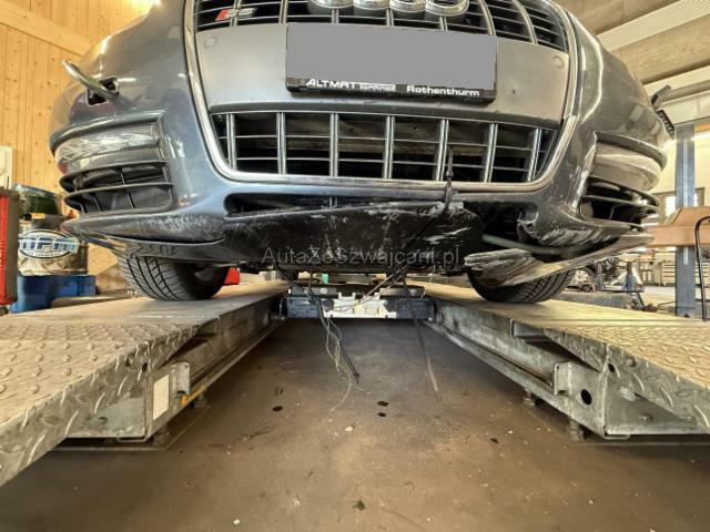 | Condition_and_Equipment | Zustand Fahrzeug muss transportiert werden (Höhe und Breite beachten). Fahrzeug ist NICHT fahrbar. Fahrzeug ist rollbar. Bereifung Fahrzeug wird mit Winterräder abgegeben. Sonstiges Fahrzeugdokumente vorhanden. --- Front Front eingedrückt. Fahrzeugvorbau verschoben. Motor Risiko Motor. Risiko Getriebe. Alle Kühler vorne sind eingedrückt. Motorstörung: Warnleuchte aktiv Öl-/Kraftstoffaustritt vorhanden Achse Vorderachse ist beschädigt. Risiko Vorderachse. Risiko Lenkung. Motoraufhängung/Aggregateträger ist beschädigt. Elektrik Risiko Steuergeräte. Unterboden Bodengruppe verzogen/beschädigt. Sonstige Schäden Div.Carrosserie Teile sind leicht beschädigt. Lackierung matt (stumpf, beschädigt). Weitere Beschädigungen Abgasanlage beschädigt, Unterboder gerissen. Kalkulation nicht abschliessend. --- Serienaustattung Sitzheizung für Vordersitze Durchladesystem inkl. Skisack Tempostat Aussenspiegel elektrisch verstellbar und heizbar Nebelscheinwerfer Diebstahlwarnanlage mit Innenenraum-Überwachung Airbag Fahrer und Beifahrerseite Seitenairbag Fahrer und Beifahrerseite Zentralverriegelung mit Fernbedienung Elektronische Wegfahrsperre Servotronic Lenksäule mit Höhen- und Längseinstellung Seitliches Kopfairbagsystem SIDEGUARD CD-Wechsler im Handschuhfach Radschrauben mit Diebstahlsicherung Dachhimmel schwarz/ Stoff Fahrerinformationssystem mit Farbdisplay Elektrische Fensterheber vorne + hinten Dachreling blank Tiptronic Multifunktions-Sportlenkrad 3-Speichen in Leder Scheinwerfer Reinigungsanlage Adaptive light inkl. Xenon-plus Scheinwerfer ABS und EBV Elektr. Bremskraftverteilung Bremsassistent EBA ESP Elektronisches Stabilitätsprogramm ASR und EDS Antriebsschlupfregelung und Differrentialsperre Wärmeschutzverglasung Regensensor Rücksitzlehne geteilt 1/3 oder 2/3 / umklappbar Leder Alcantara mit Sitzheizung vorne Ablagepaket Klimaautomat plus mit Staub und Pollenfilter Lichtpaket Grösserer Kraftstofftank Radio/ CD MMI High Bedienungskonzept Elektromechanische Parkbremse Tagesfahrlichtschaltung + Regensensor Pack Glanz Leichtmetallräder 18" S-Design 255/40 DSP Sound System S Sportfahrwerk Keine Gewähr auf die Angaben der Serienausstattungen Sonderausstattung Sitzheizung für Vorder- und Hintersitze Garagentoröffner Home Link Leder Seidennappa Metallic-/ Perleffekt-Lackierung Elektrisches Solarschiebedach Gepäckraumklappe automatisch öffnend Lenksäule Neigungs- und Axialverstellung elektrisch Automatisch abblendbarer Innenspiegel Aussenspiegel mit Memory el. anklappbar/ auto. abblendbar Bose Surround Sound System Park-System vorne + hinten advanced |