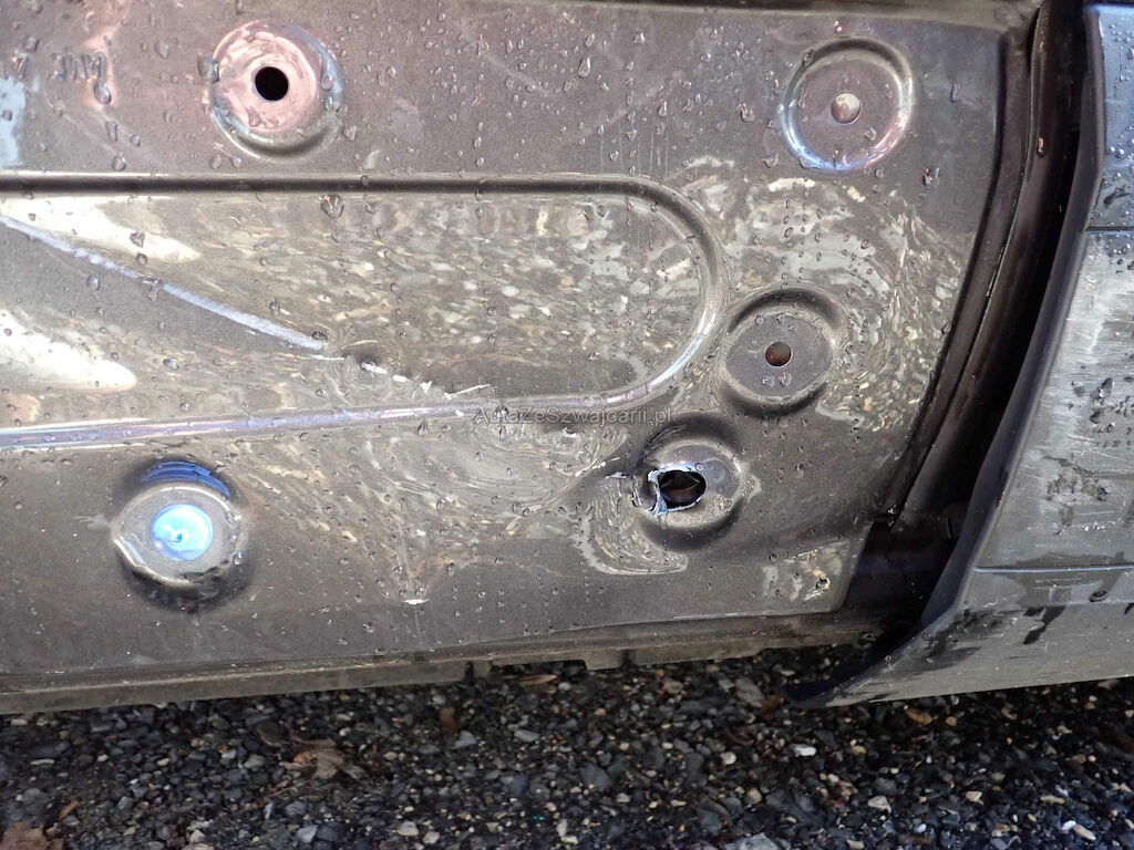 Pare-chocs Av, calandre, renfort, phares, radar, radiateurs, filtre à air, longerons, capot, aile Av, 2 portes G, jantes AvG, prétentionneurs de ceintures
