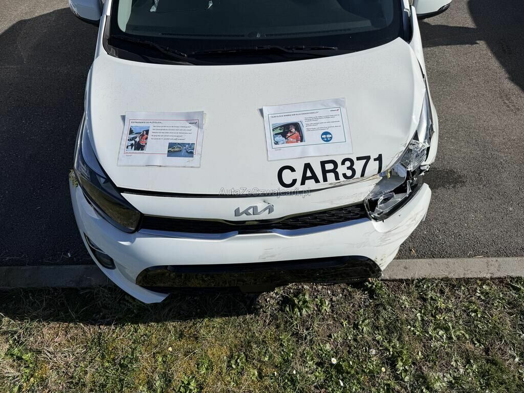 Bei der Kollision wurde die Front im Bereich der linken Seite stark eingedrückt. Die Haube, Träger und Kotflügel wurden deformiert. Der Stossfänger ist mehrfach gebrochen und Anbauteile wurden beschädigt. Zusätzlich haben alle Airbags und Gurtstraffer ausgelöst.